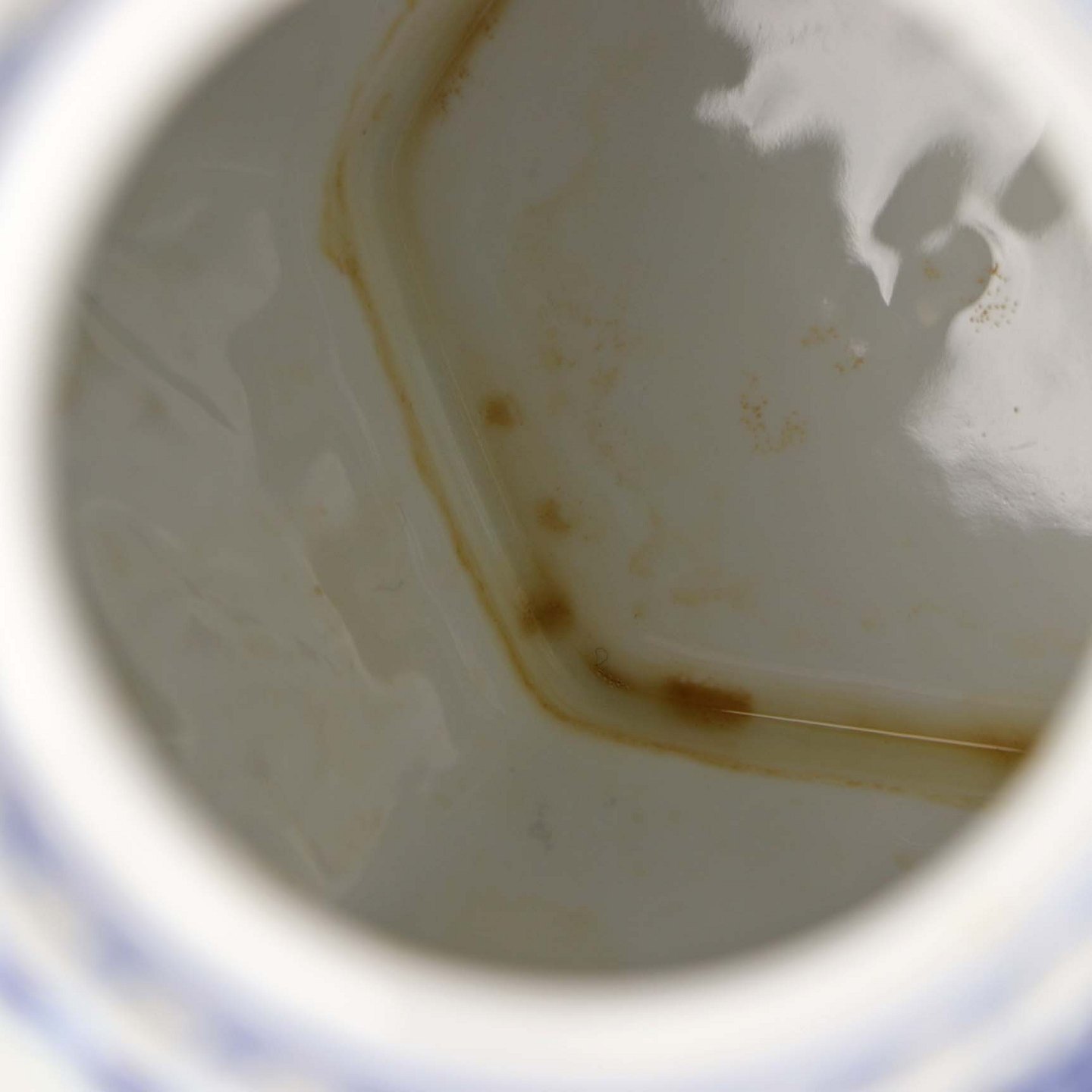 Stellet Musselmalet Helblonde er hvidt porcelæn dekoreret med blå blomster og mønstre. Øverst er porcelænet dekoreret med hulmønster.
