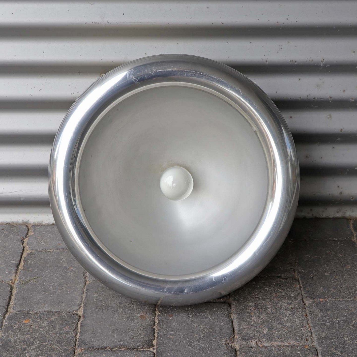 Stor loftslampe model Globe i beige og sølvfarvet aluminium