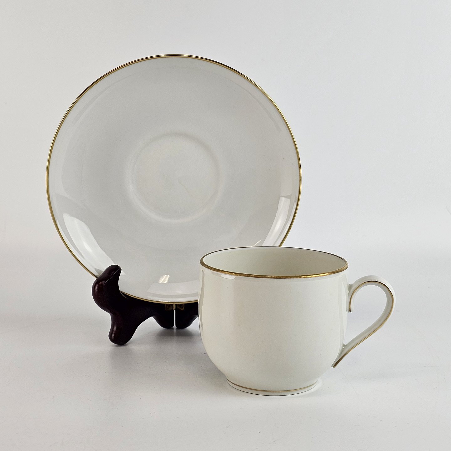 Aarestrup serien er af hvidt porcelæn dekoreret med kanter af guld. Brugsspor kan forekomme