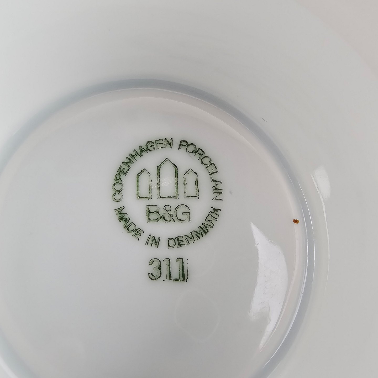 Aarestrup serien er af hvidt porcelæn dekoreret med kanter af guld. Brugsspor kan forekomme