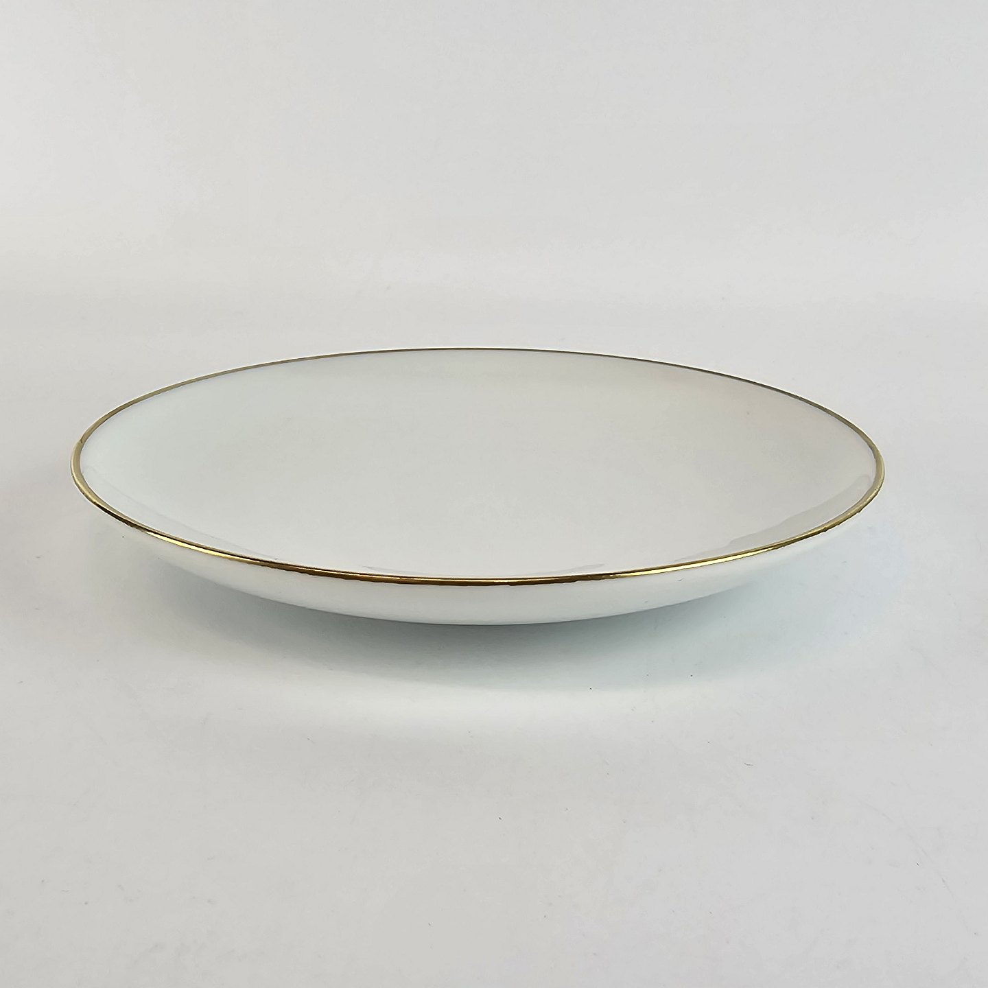 Aarestrup serien er af hvidt porcelæn dekoreret med kanter af guld. Brugsspor kan forekomme