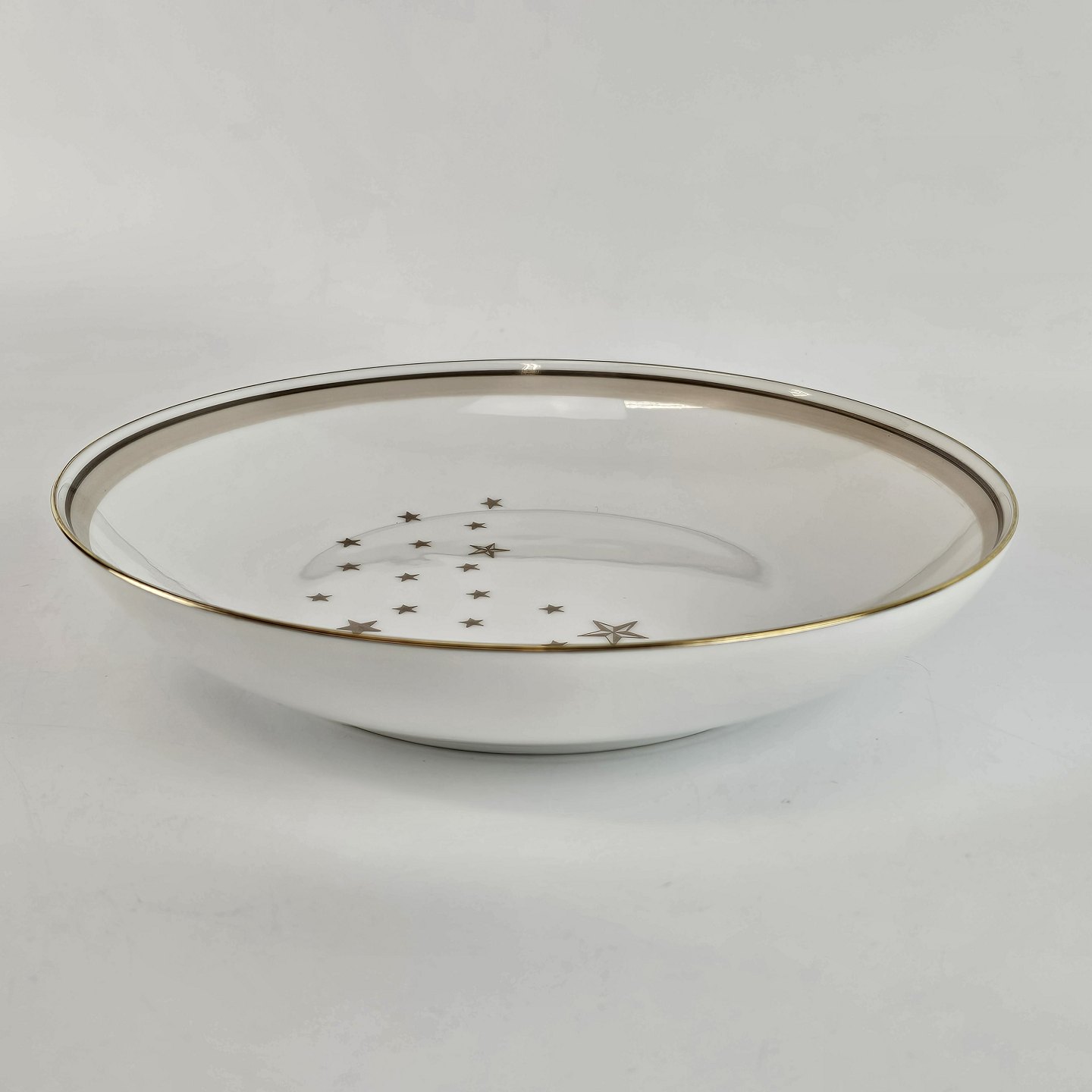 Mælkevejen er af hvidt porcelæn dekoreret med stjerner, en brun ring og guldkanter. Brugsspor kan forekomme