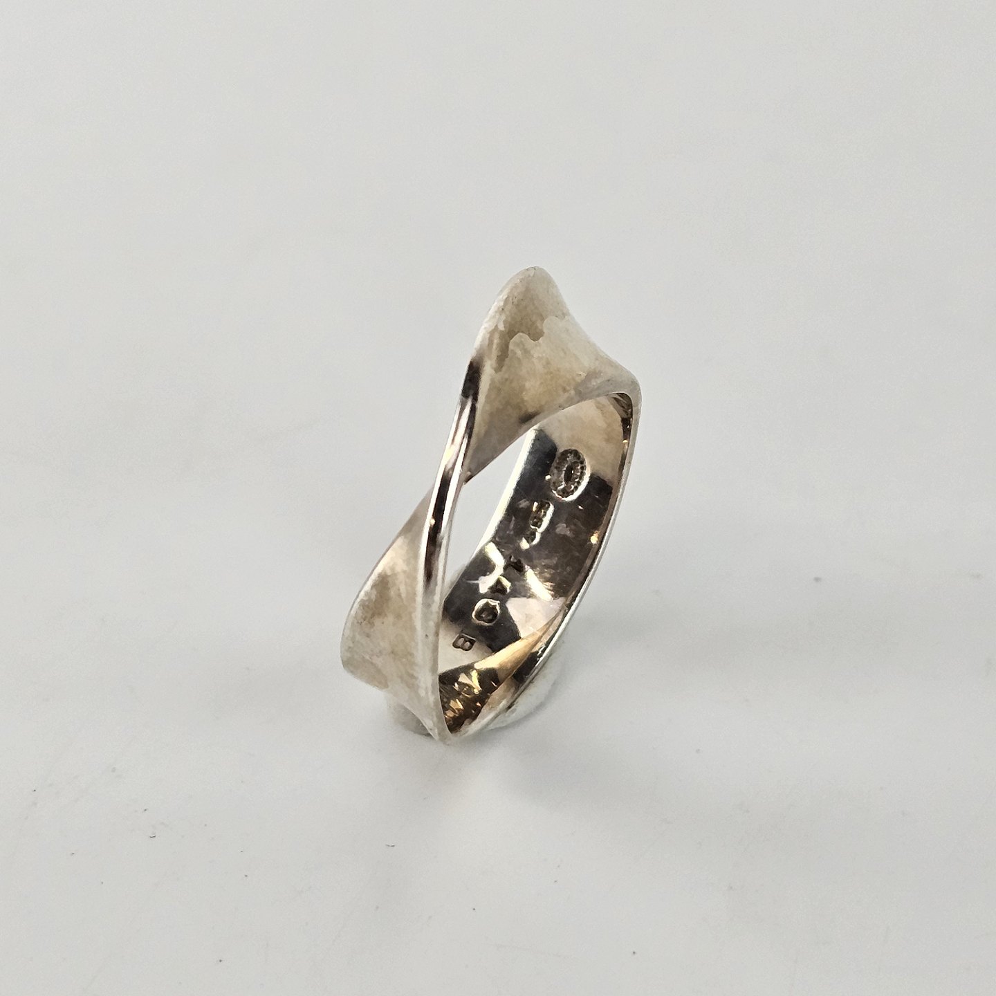 Ring af sterlingsølv med snoning fra kollektionen Möbius. Str. 56