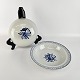 Glat hvid fajance med blå dekoration af blomster og blå bort