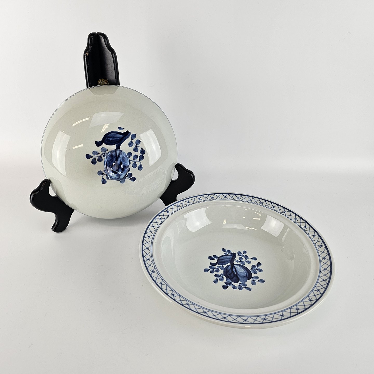 Rund skål med låg i fajance fra stellet Blå Tranquebar nr. 11/1623
