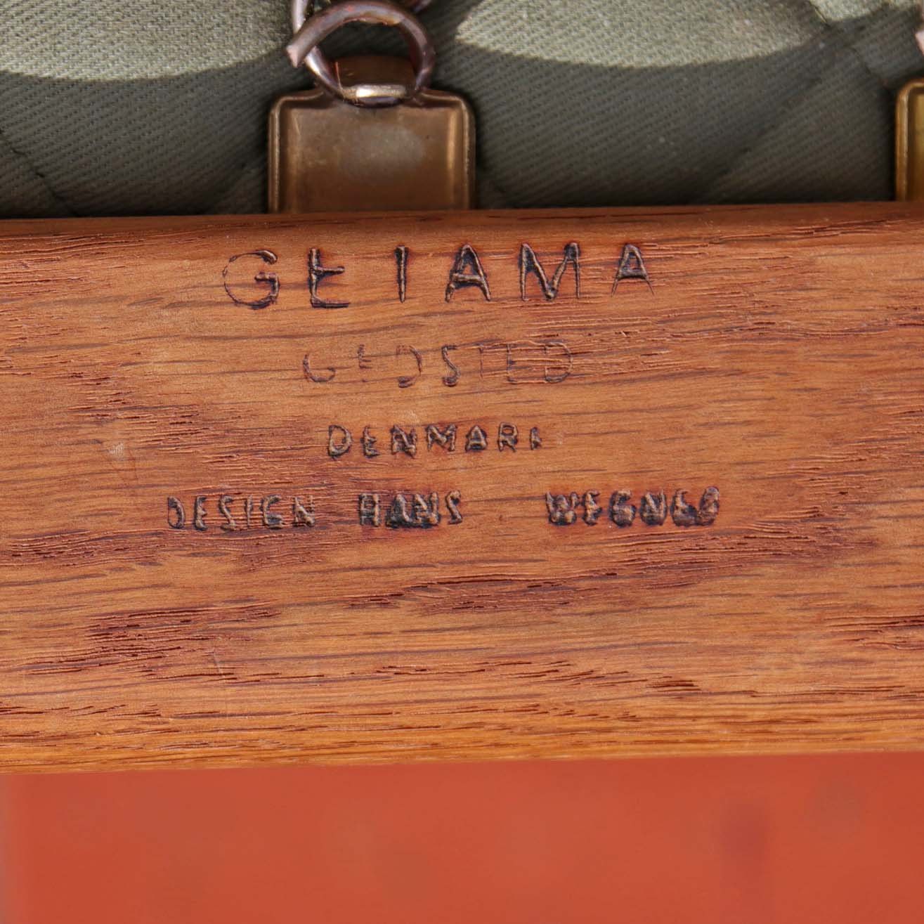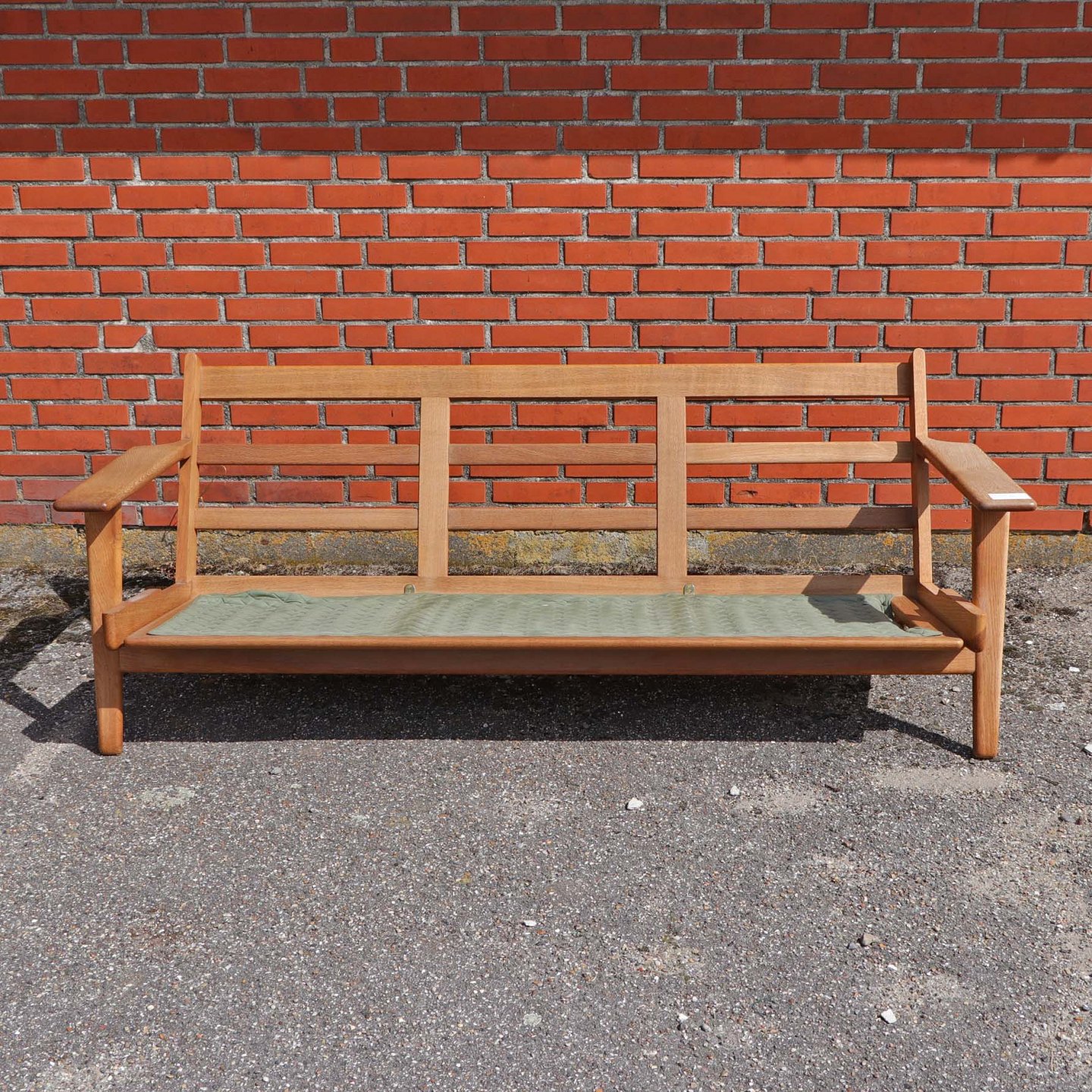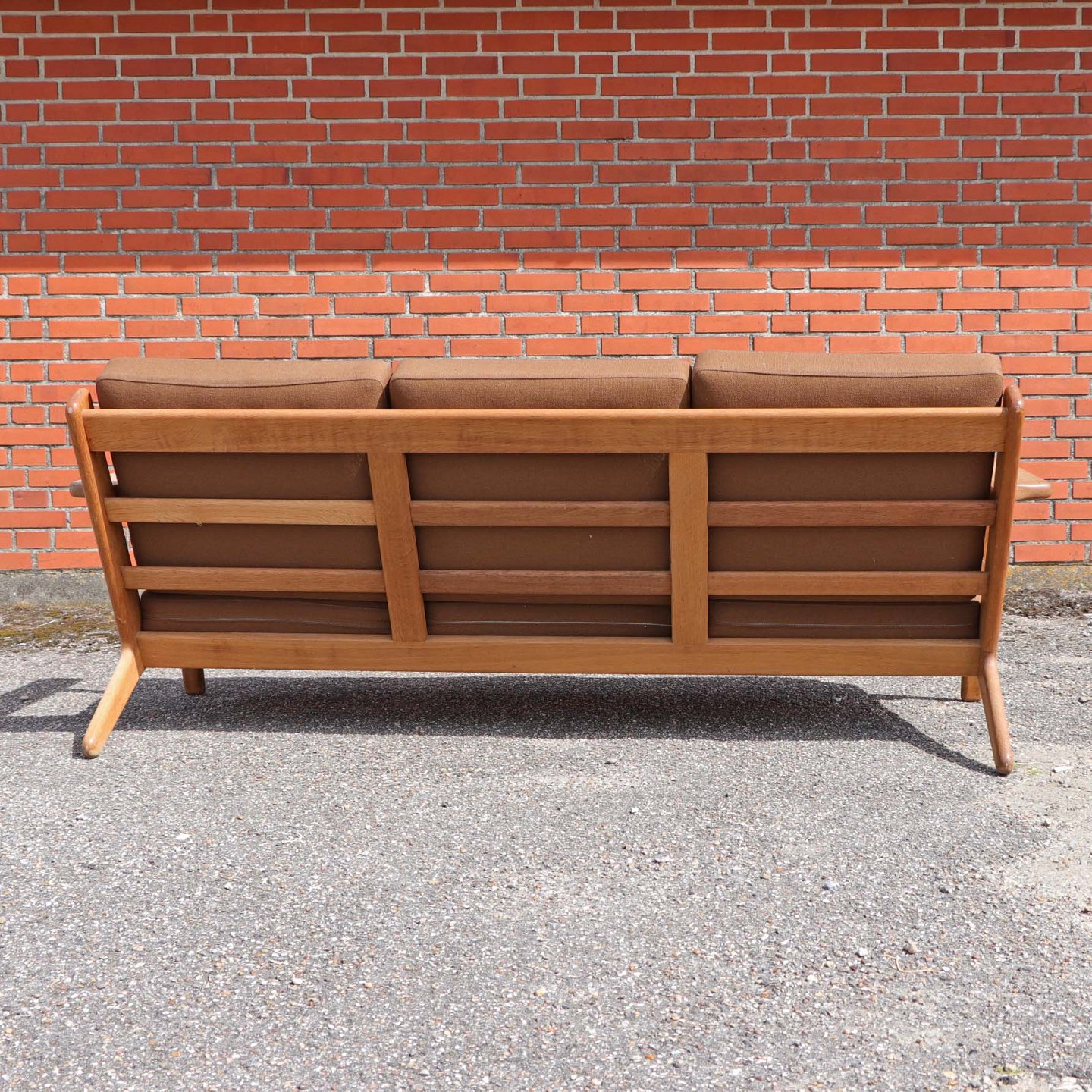 Tre personers sofa model GE290 i egetræ med Springhynder betrukket med brunt uldstof.
