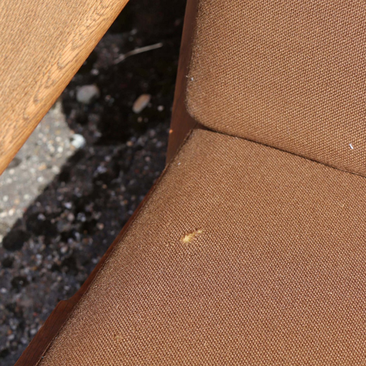Fremstår med brugsspor. Solbleget lakering, enkelte vandmærker på stel samt et par huller i uldbetrækket.