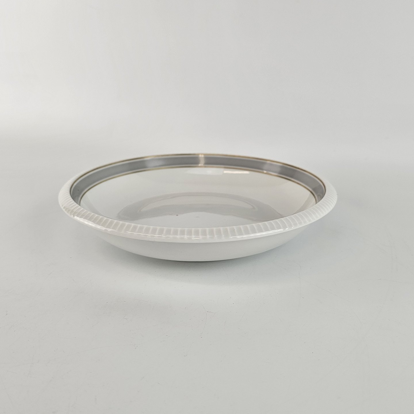 Norma er hvidt porcelæn dekoreret med gråligt bånd og guldringe. Brugsspor kan forekomme