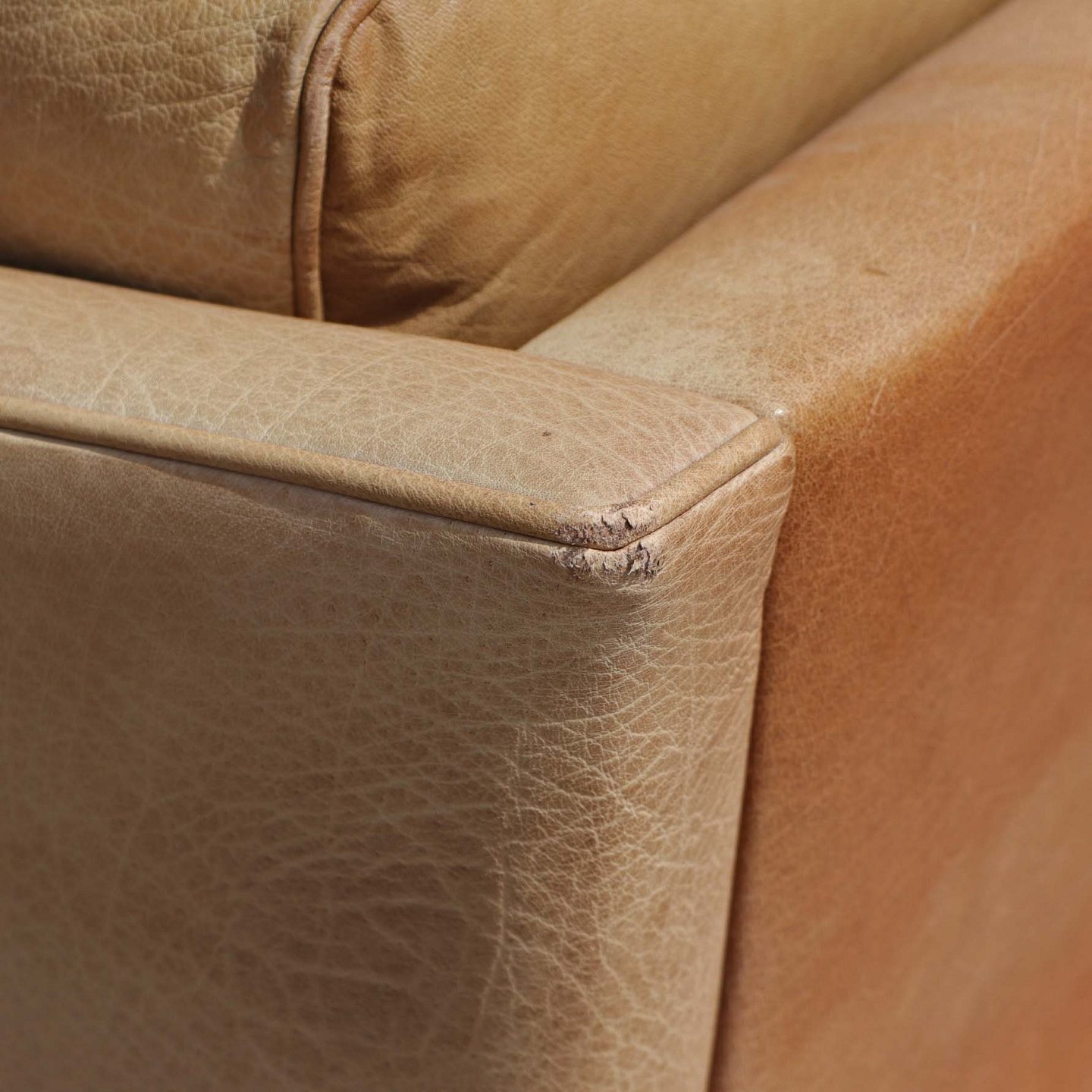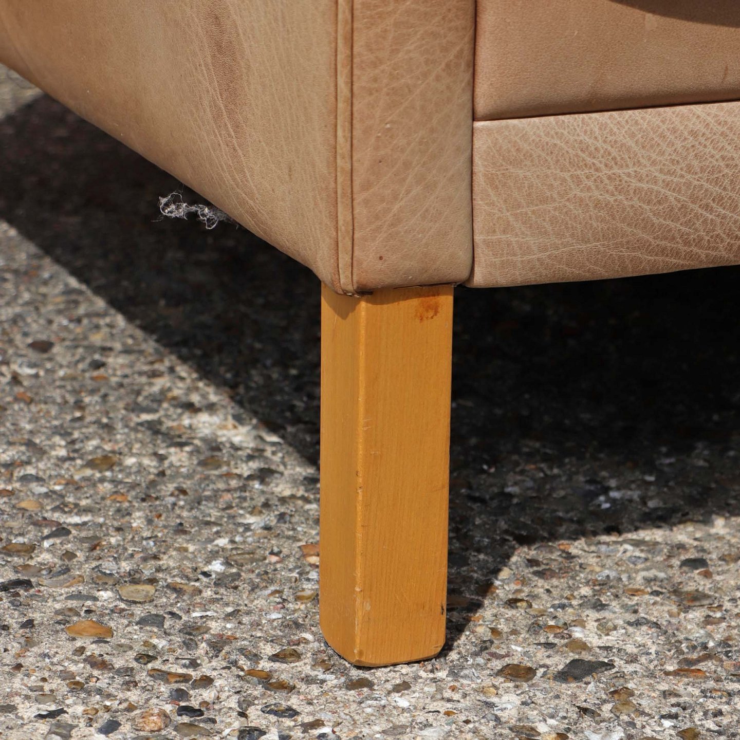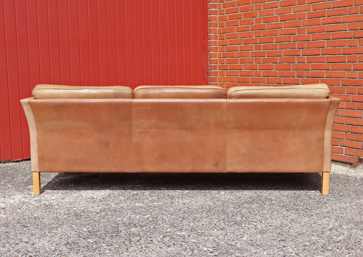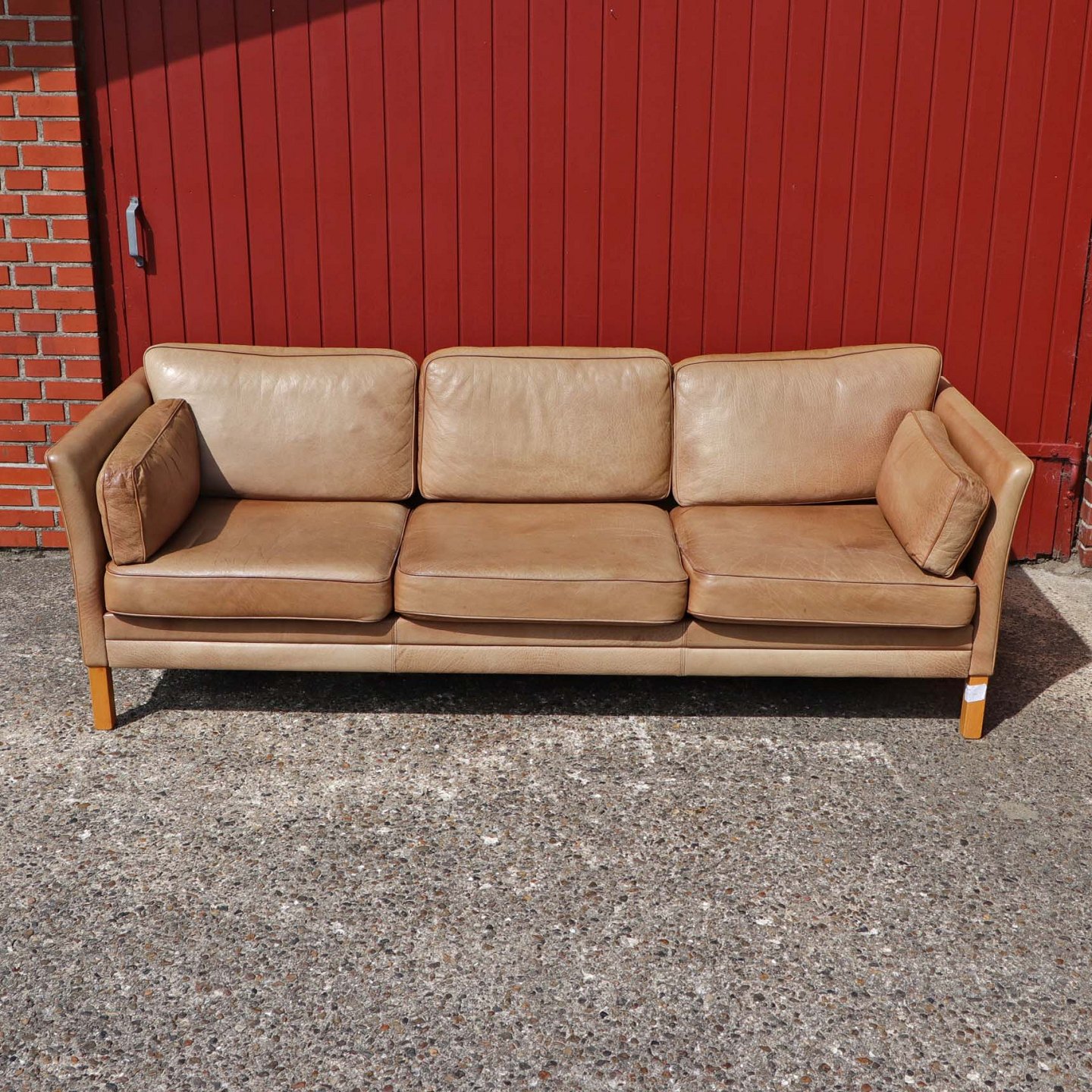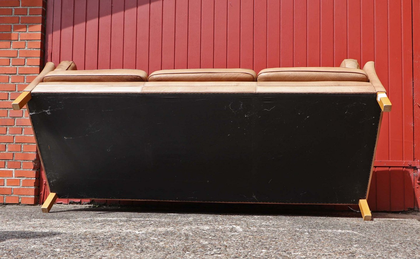 Patineret tre personers sofa i bøffellæder med ben i lyst lakeret træ