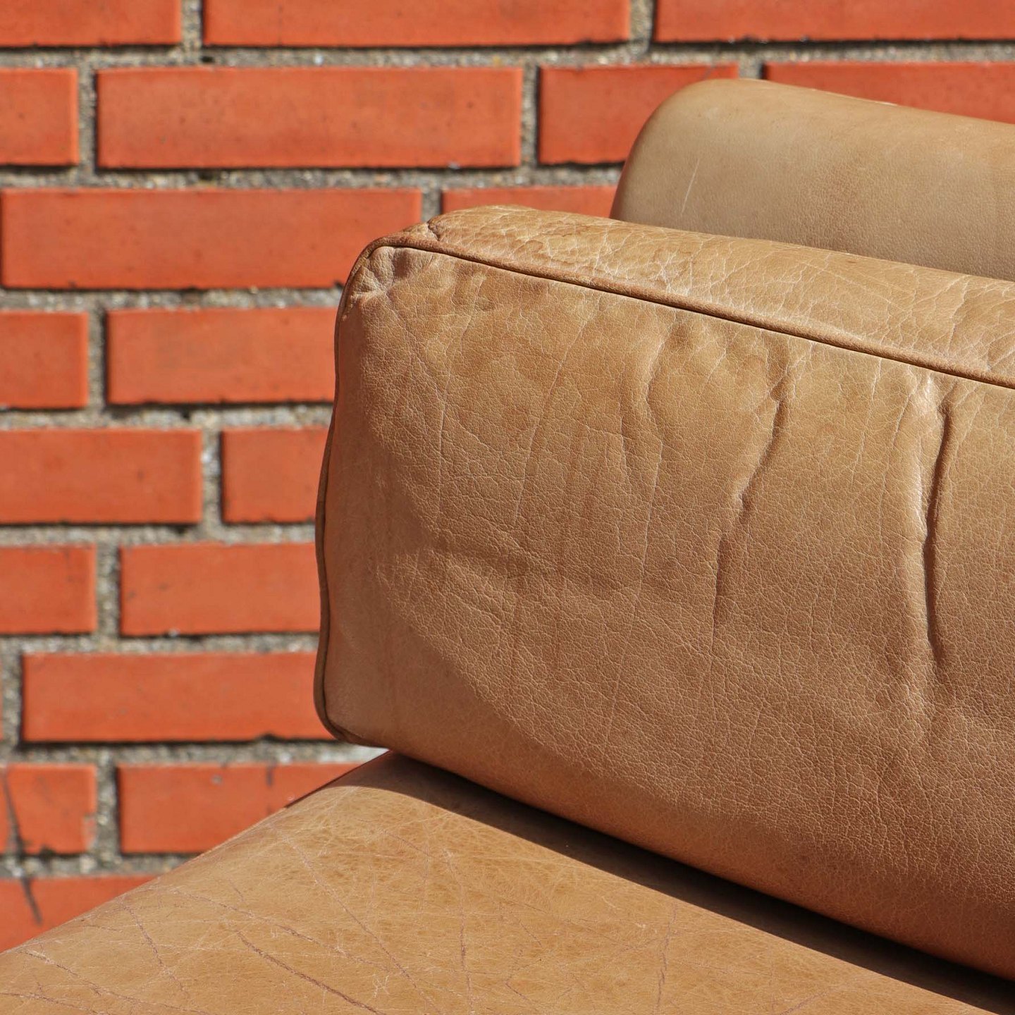 Fremstår med brugsspor på ben samt patina. Læderet er solbleget og har spredte vandmærker.