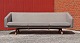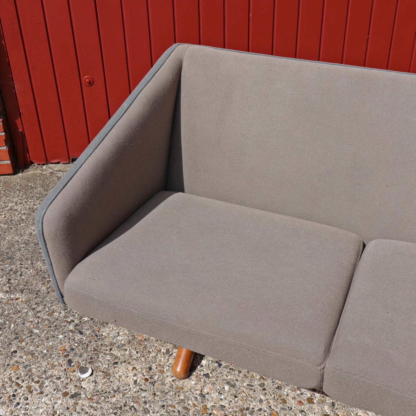 Tre personers sofa model ML90 med stel i lakeret egetræ og betrukket med lys blå og lysegrå uldstof.