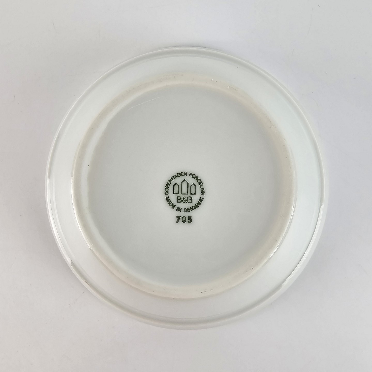 Hank er af hvidt glaseret porcelæn og med sorte hanke. Brugsspor kan forekomme