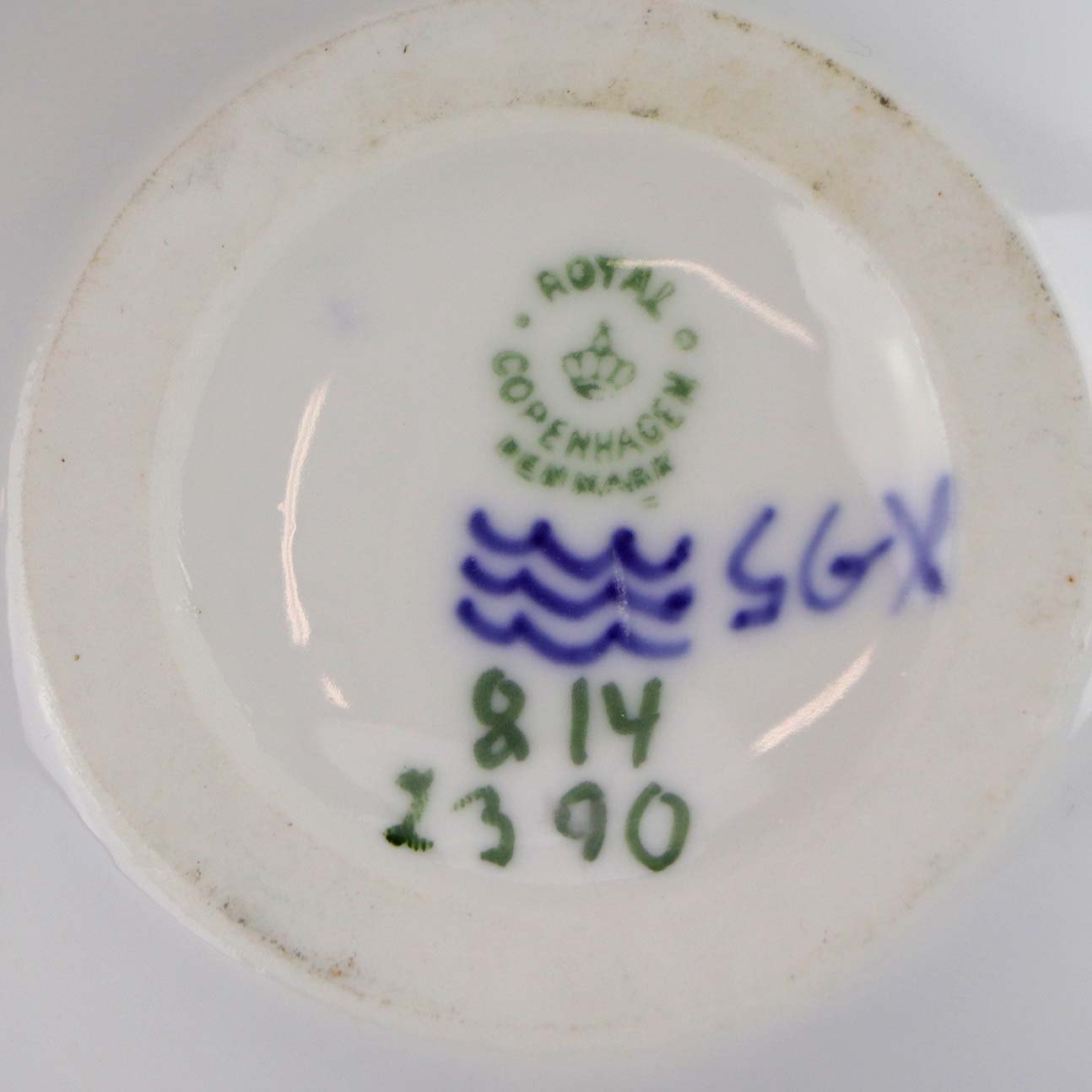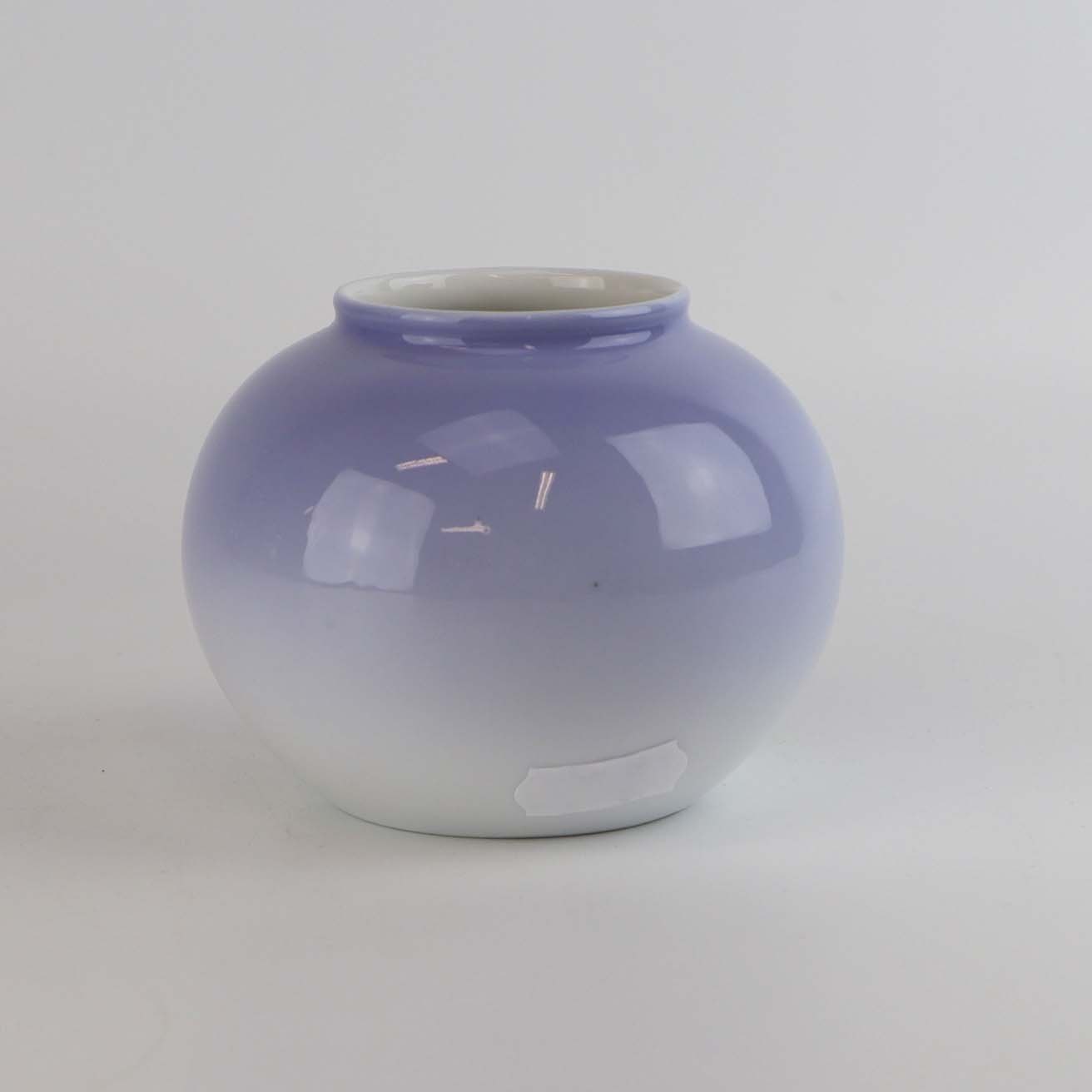 Kongelig kugleformet vase i porcelæn i graduerede blå nuancer med motiv af sommerfugle, edderkoppespind og hvide blomster nr. 814/2390