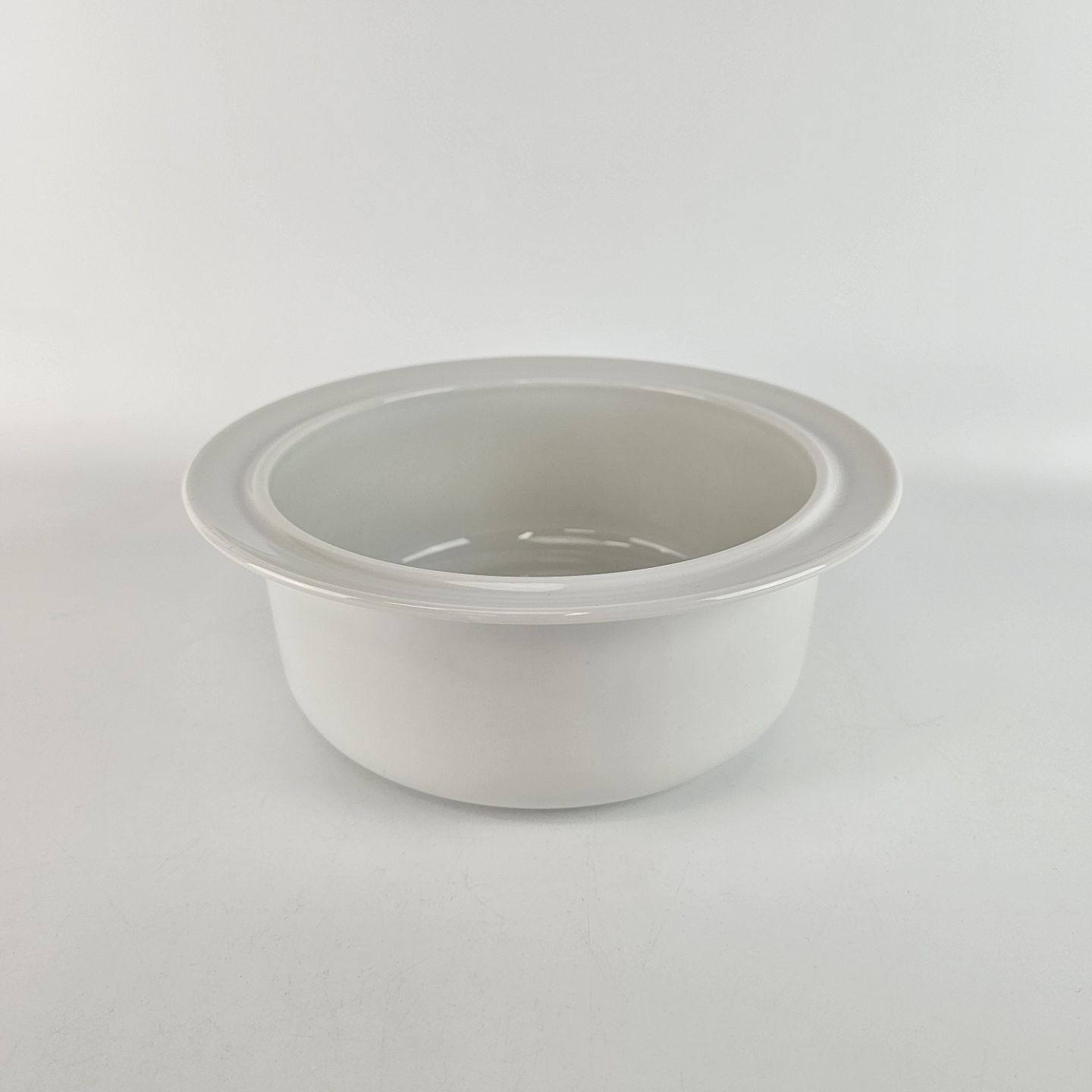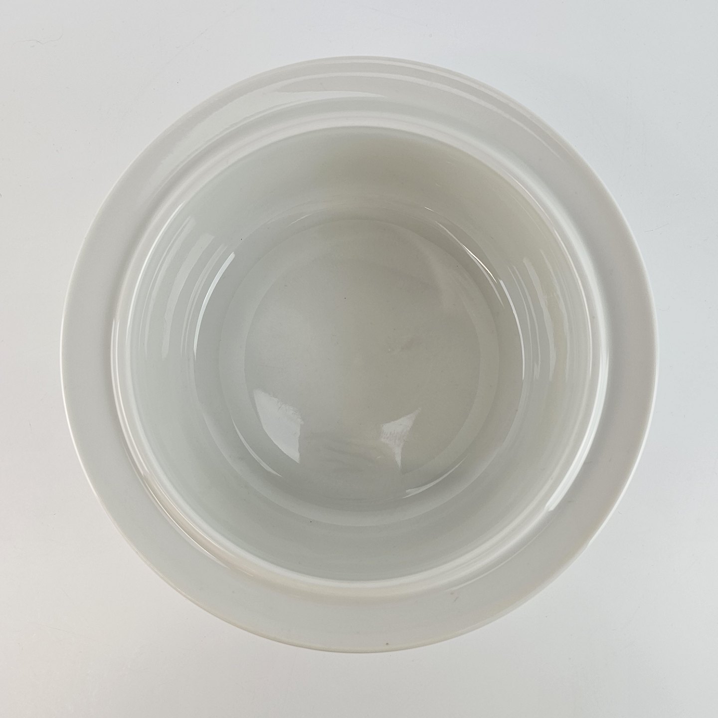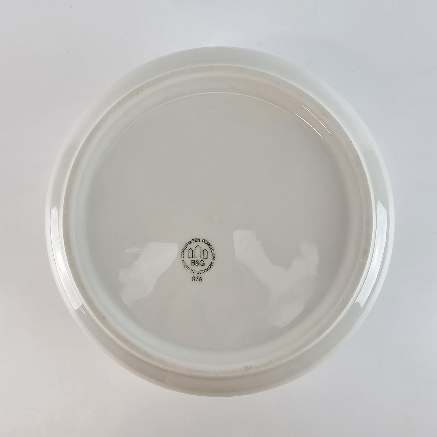 Hank er af hvidt glaseret porcelæn og med sorte hanke. Brugsspor kan forekomme