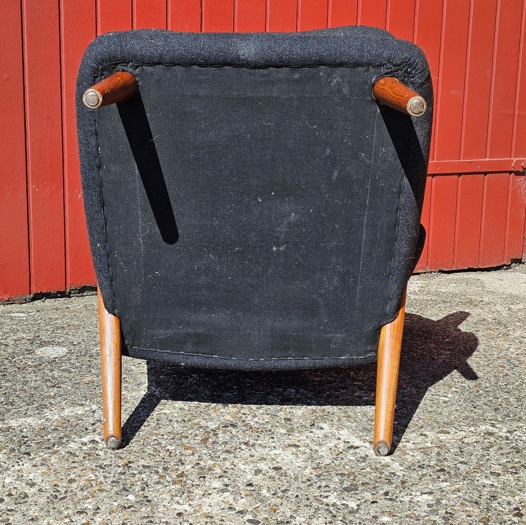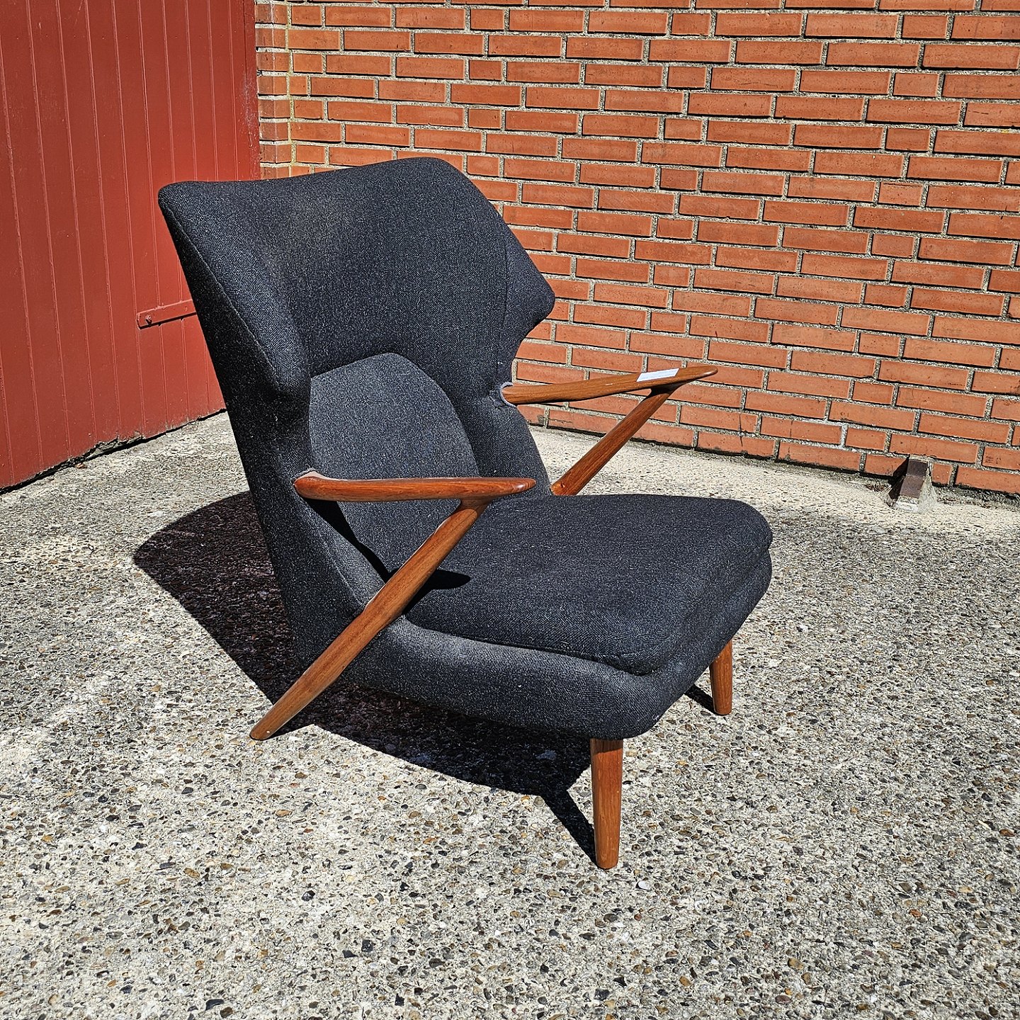 Lænestol med ben og armlæn af teak.