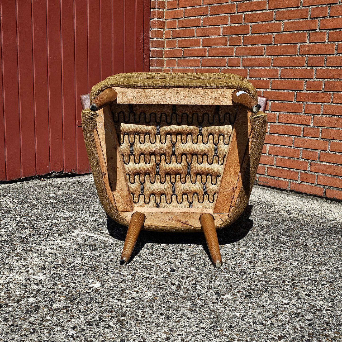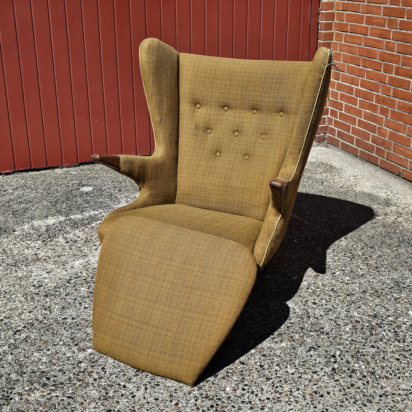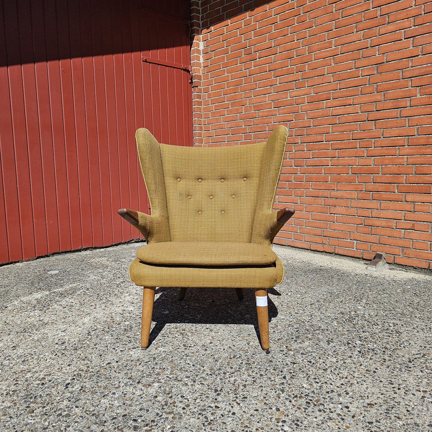 Fremstår med brugsspor på armlæn og det ene øre.