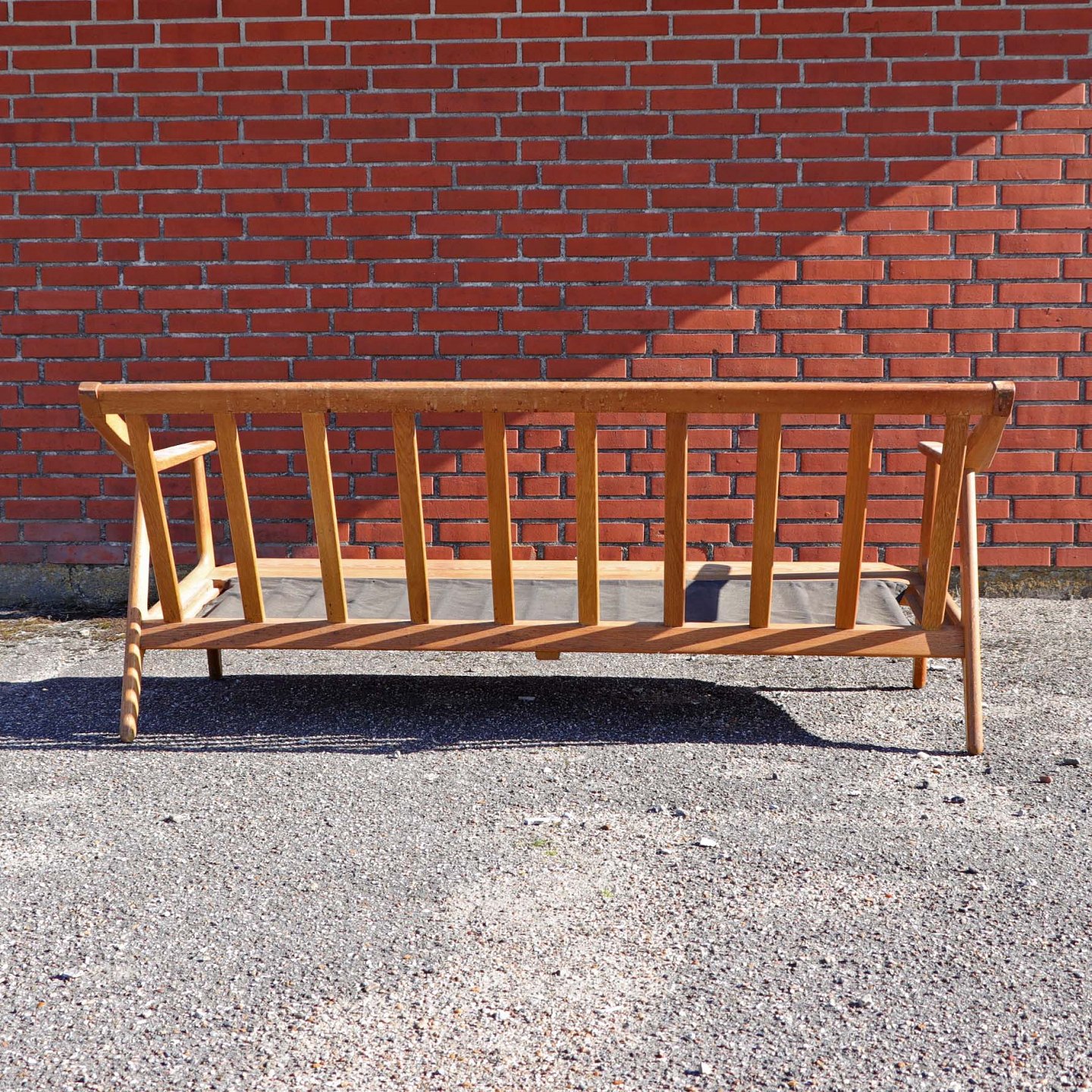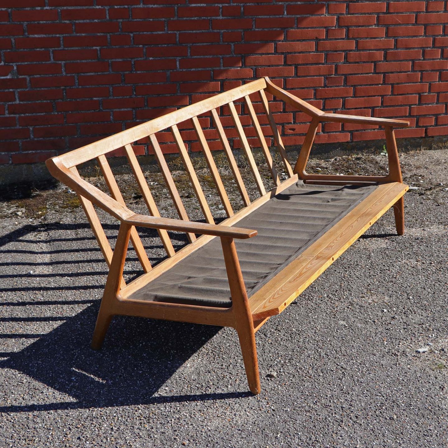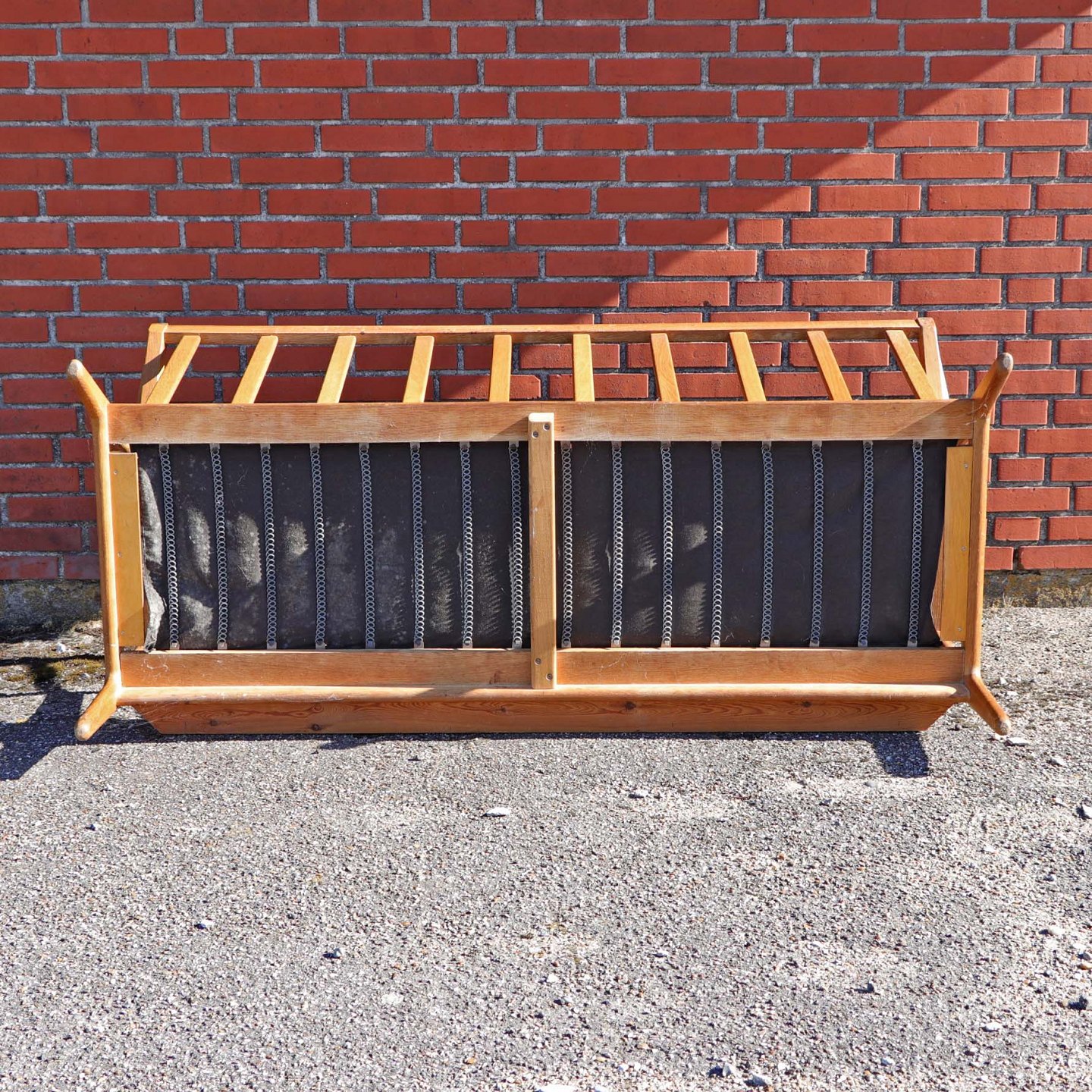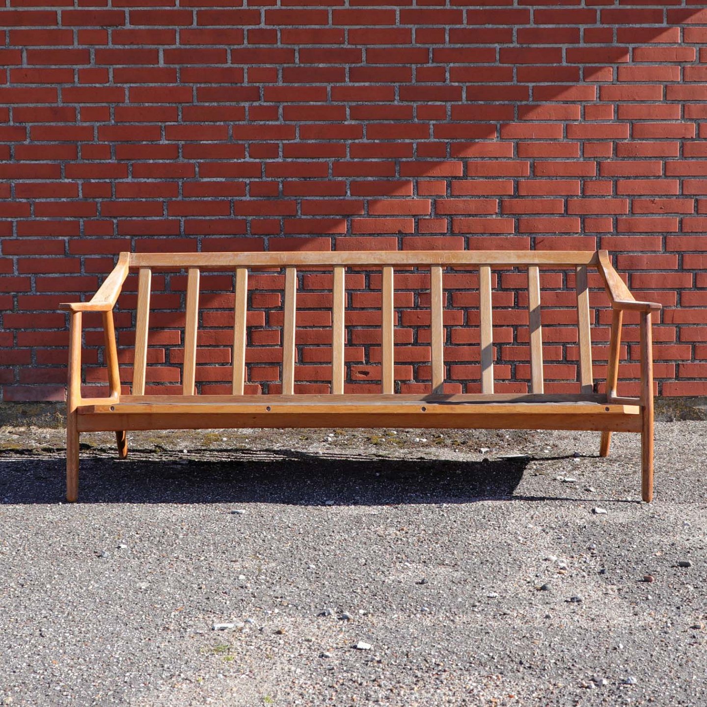 Stel i lakeret egetræ til 3 personers sofa. Sofaen har ingen hynder.