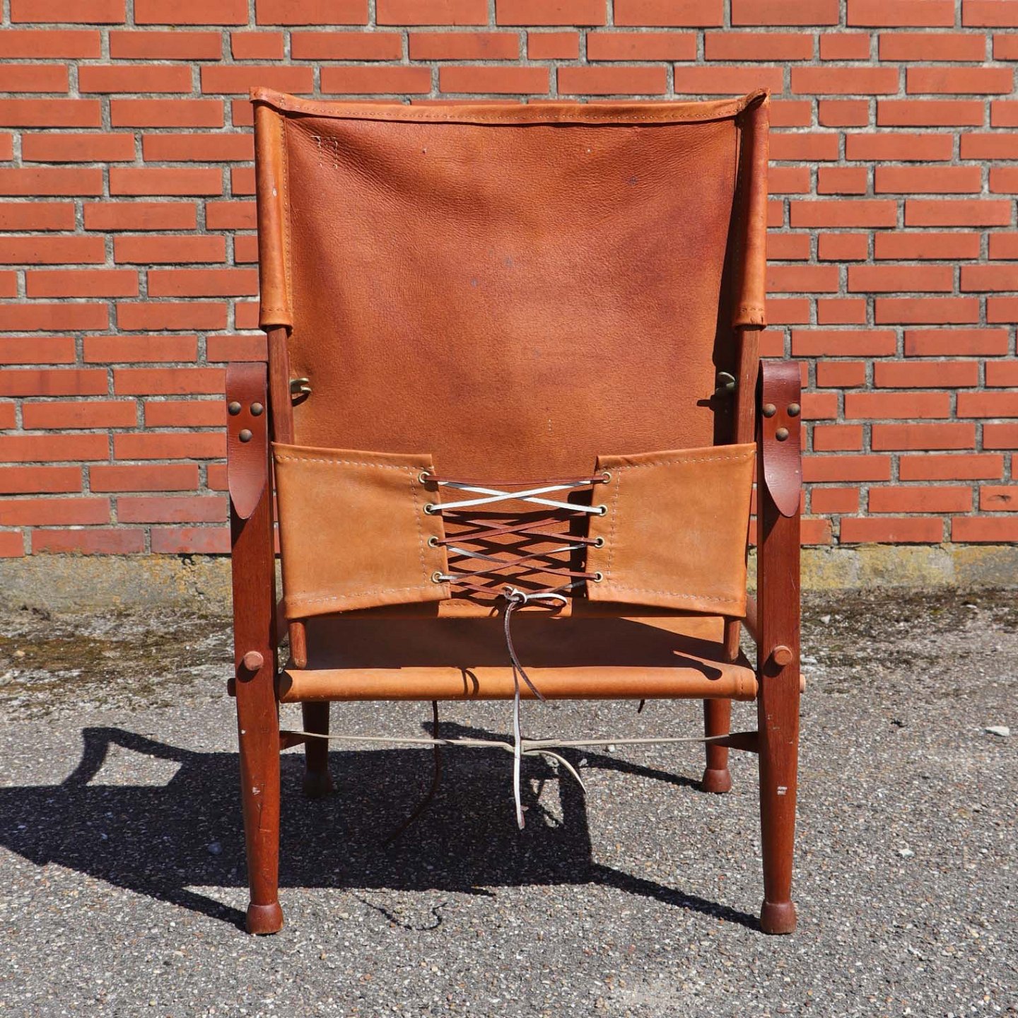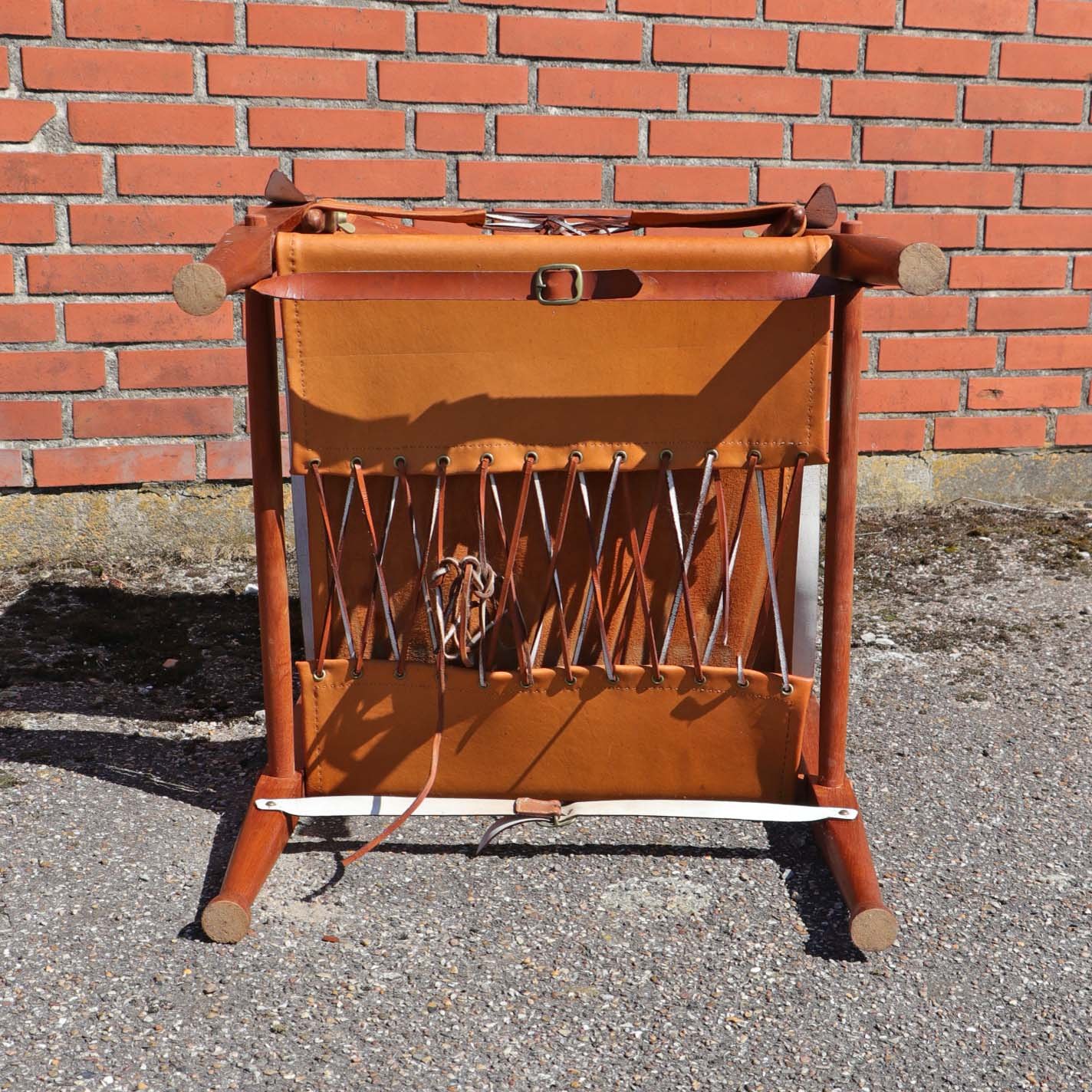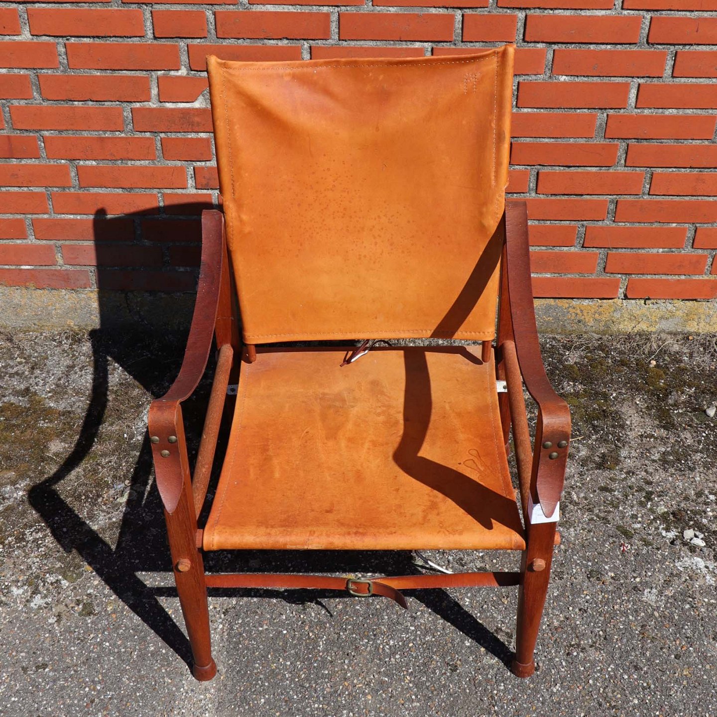 Safaristol med stel i teaktræ og ryg og sæde i cognacfarvet kernelæder