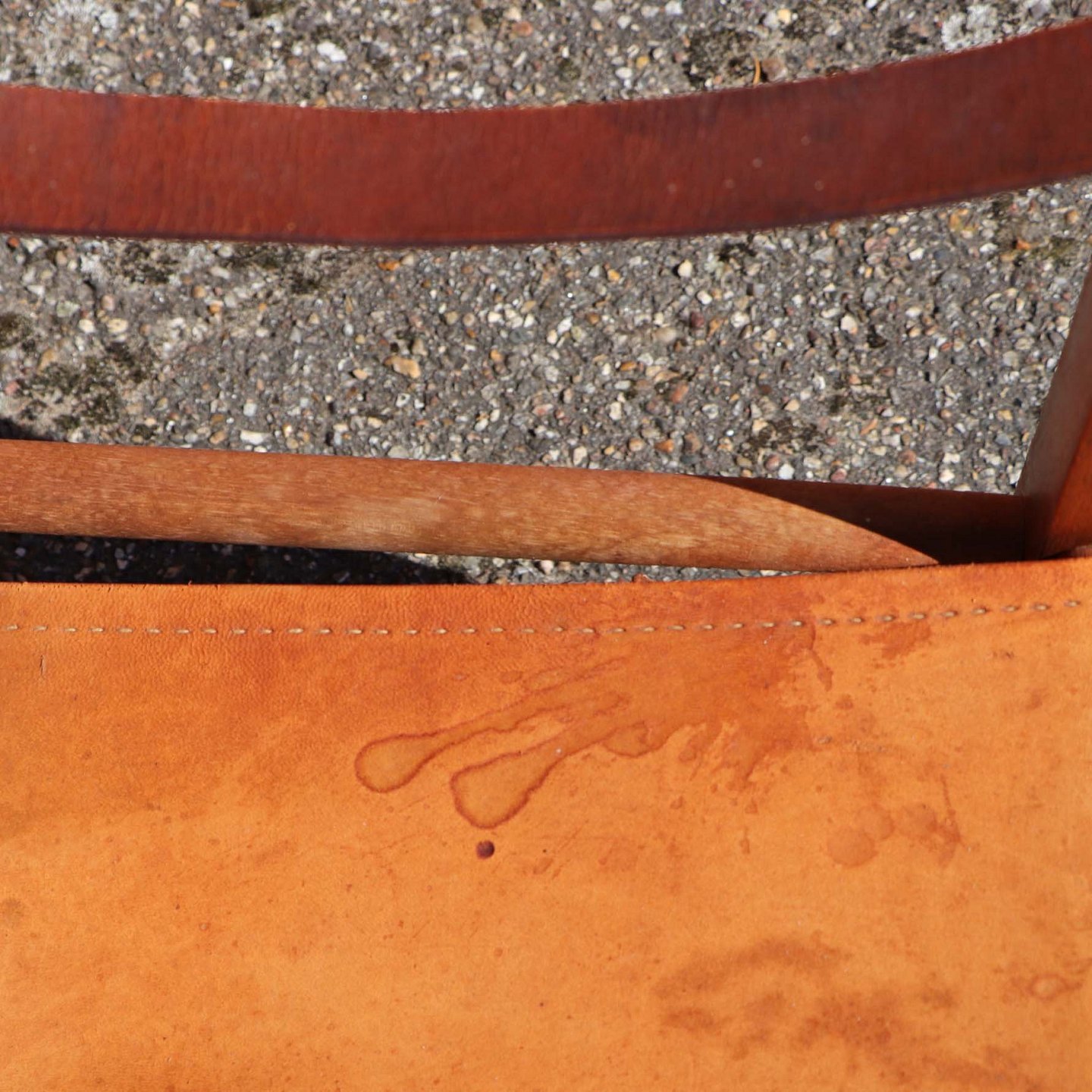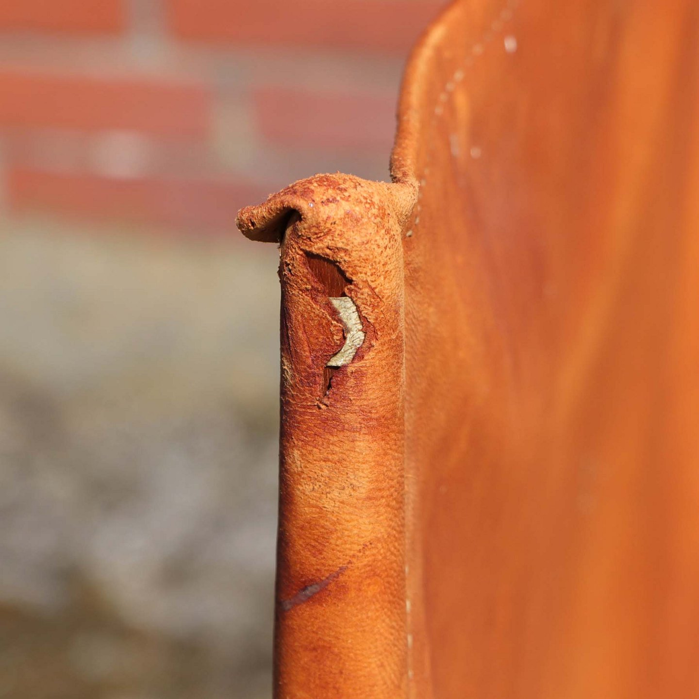 Fremstår med brugsspor på stel samt vandmærker på læderet. Mindre hul i læderet.