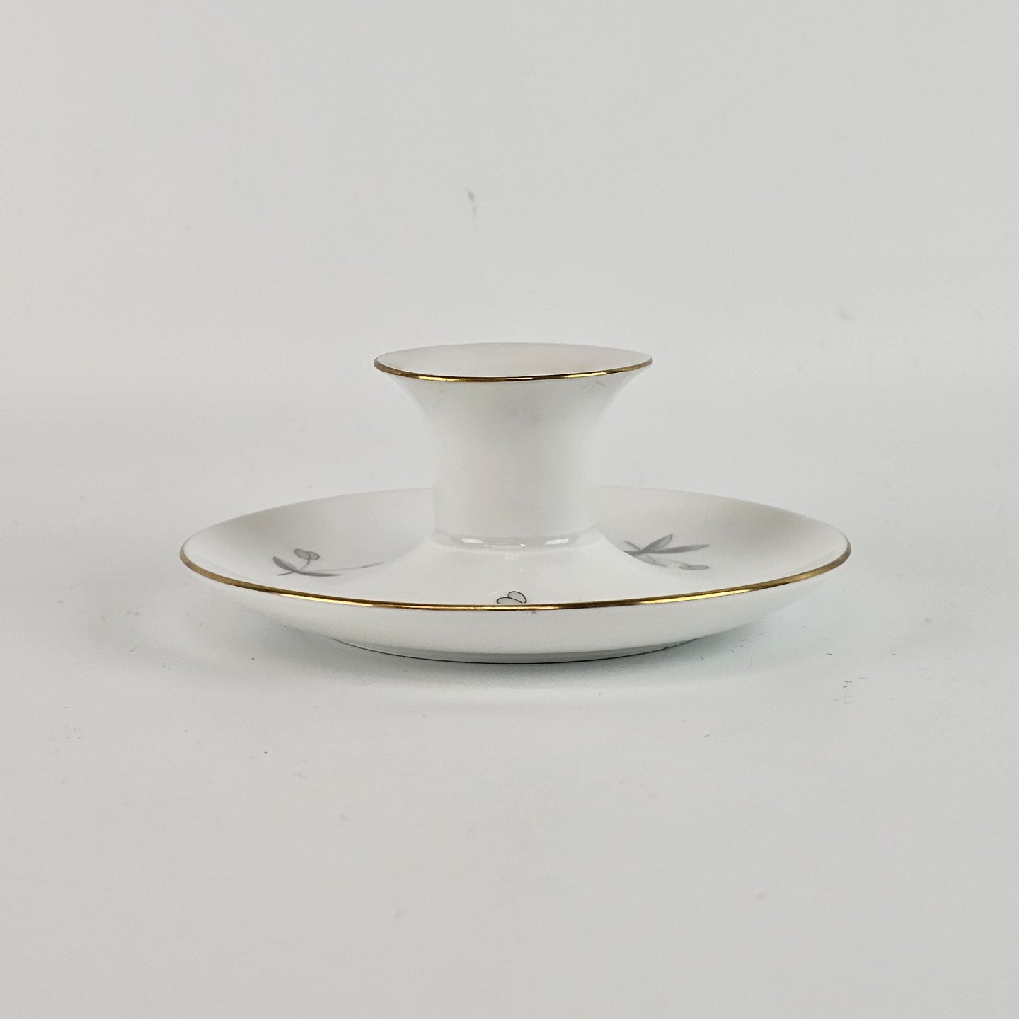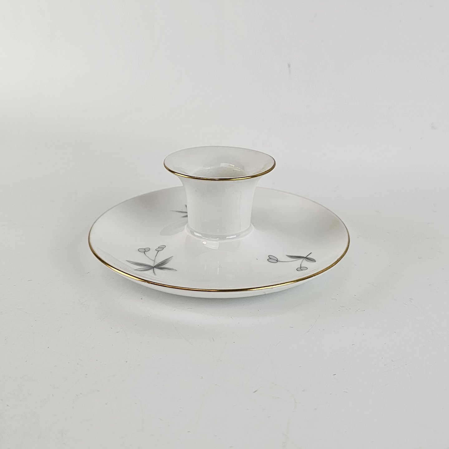 Stellet Henrik er af hvidt porcelæn dekoreret med grå burresnerre og guldkant. Mindre brugsspor kan forekomme