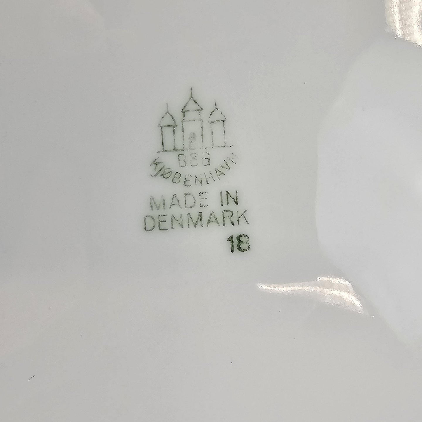 Hasselnød er hvidt porcelæn dekoreret med guldfarvet nødder, grønne blade samt et lys grønt bånd og guldkant. Brugsspor kan forekomme