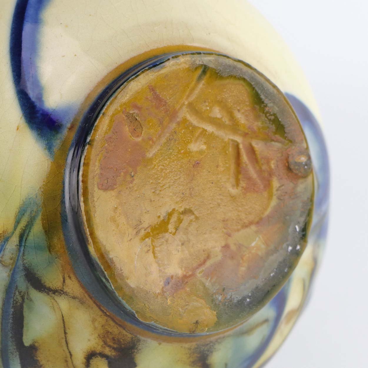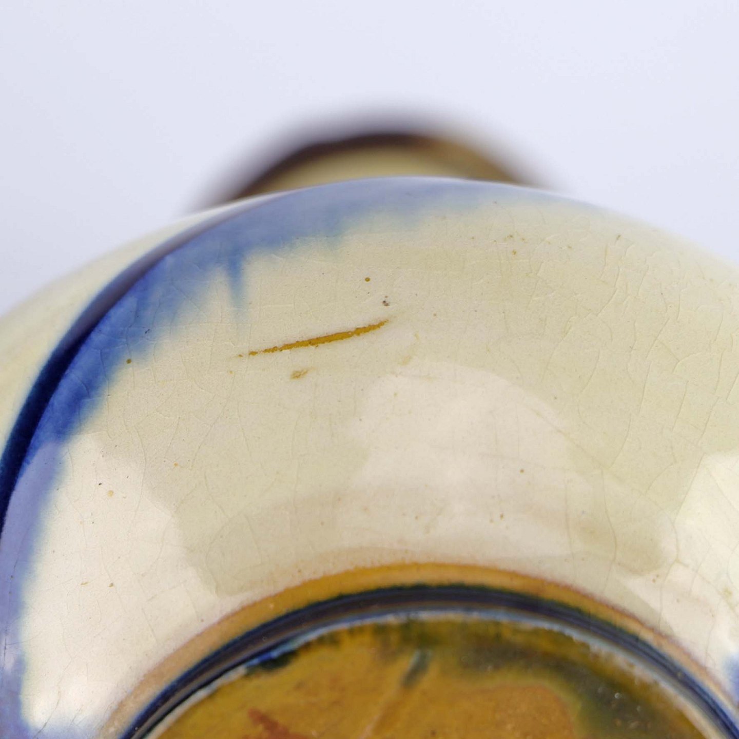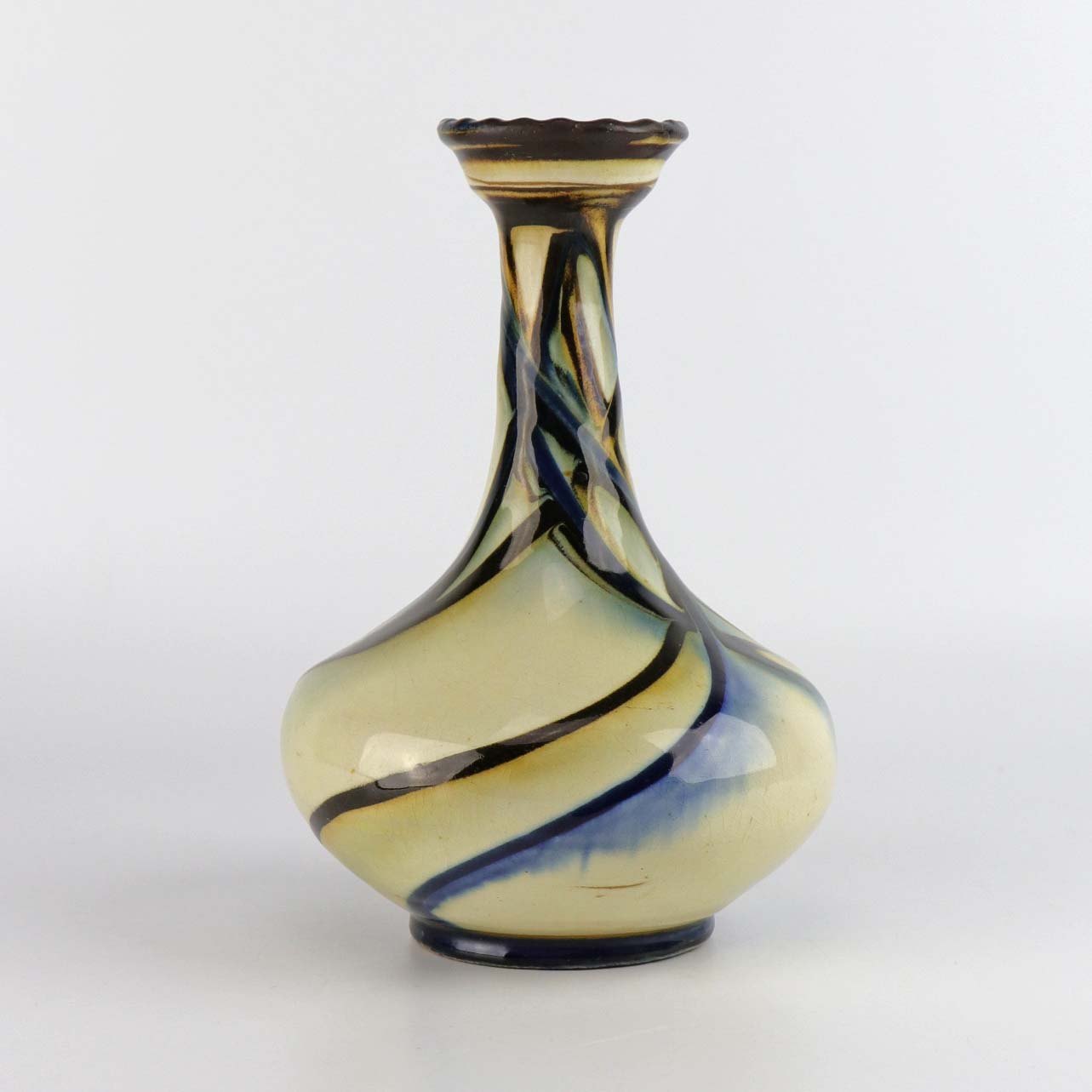 Vase i glaseret keramik med abstrakt mønster i sorte, gul og blå nuancer