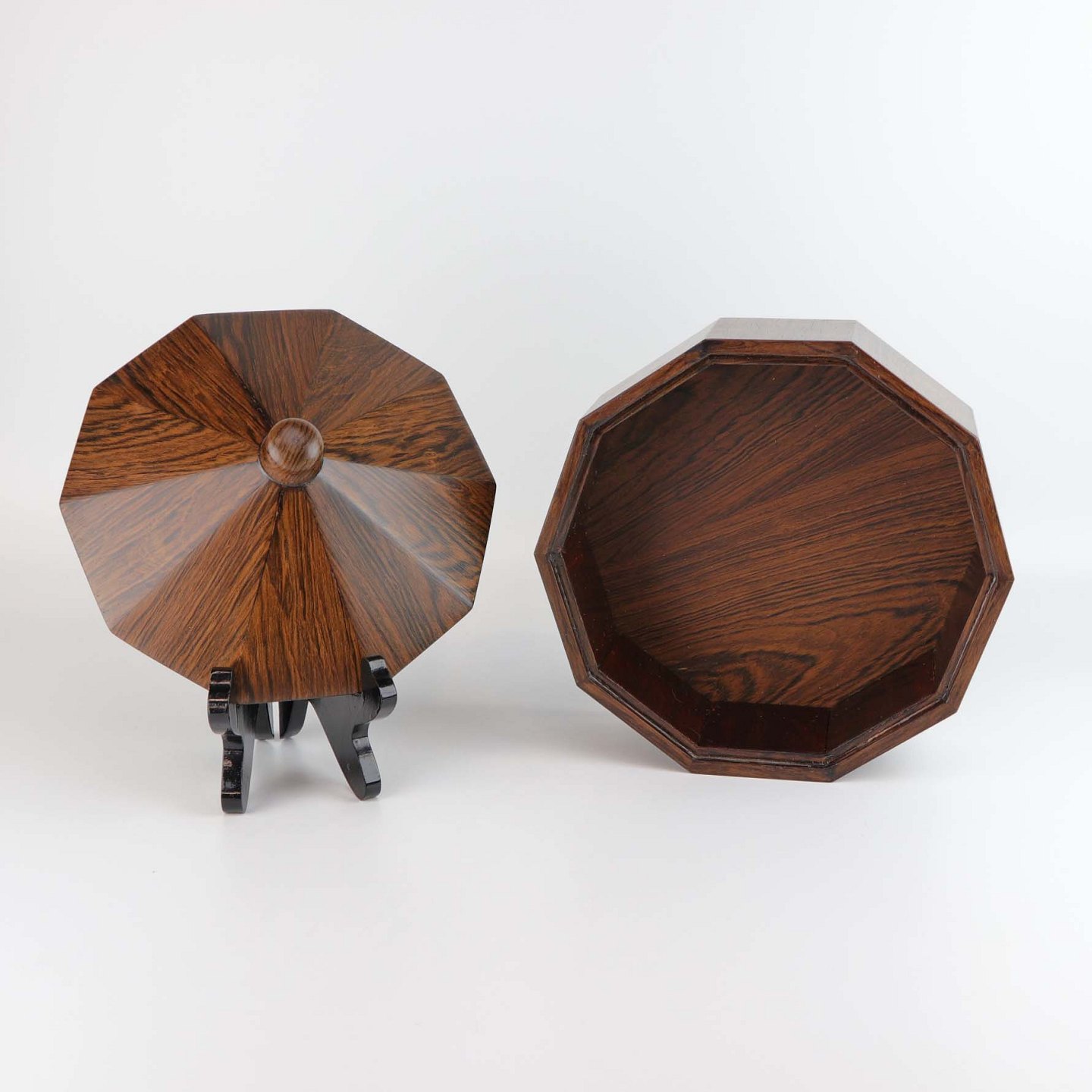 Ti kantet skrin med tilhørende låg i lakeret palisander