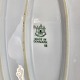 Vega er hvidt porcelæn med guldkant. Tallerkener og fade er dekoreret med riller i kanten. Kan fremstår med brugsspor