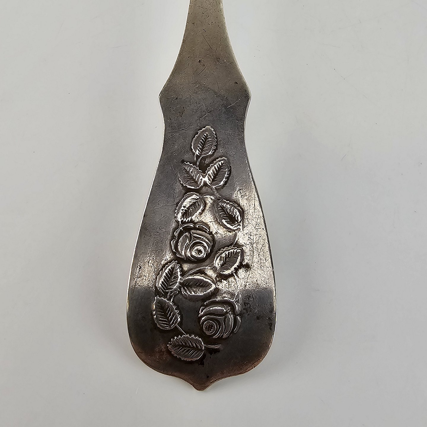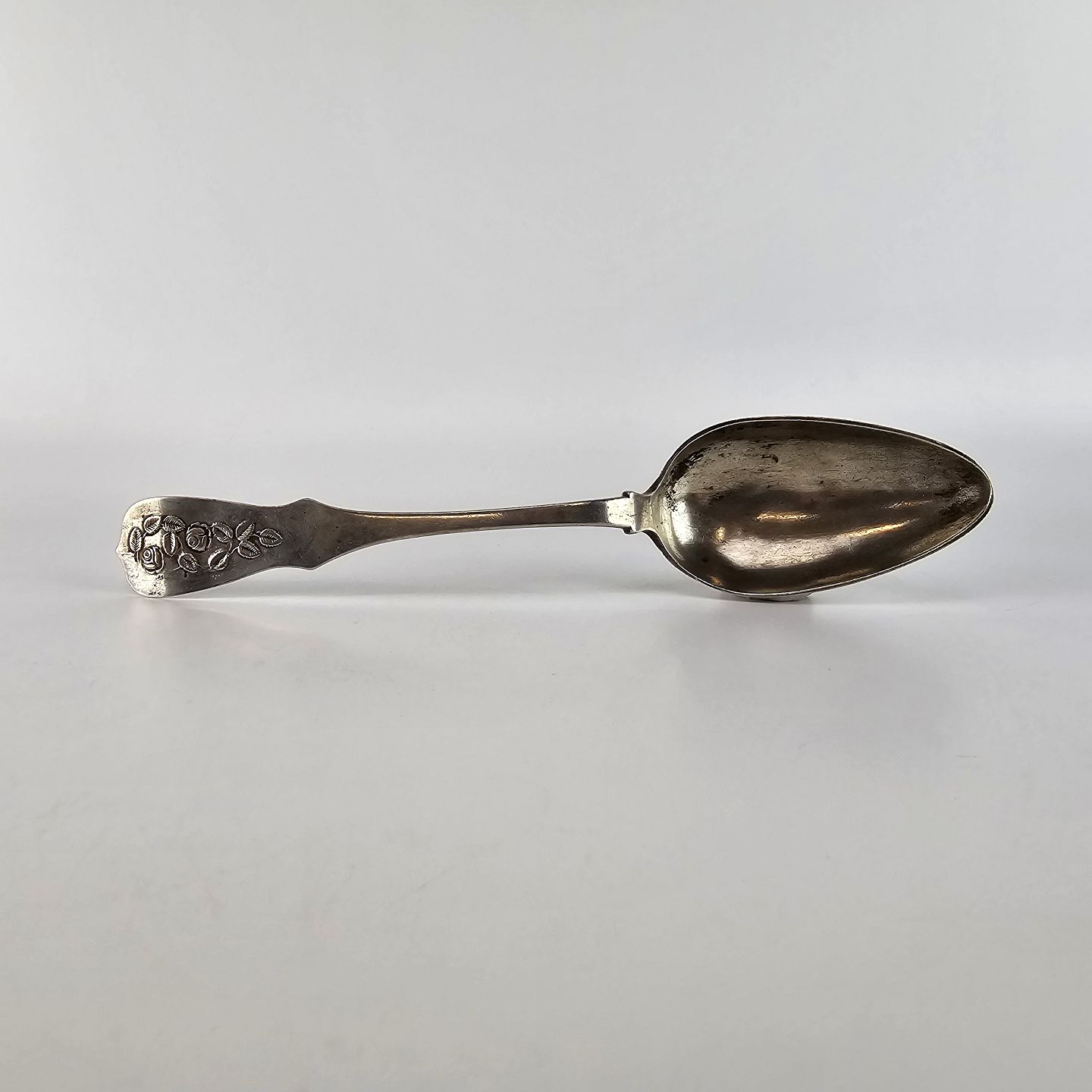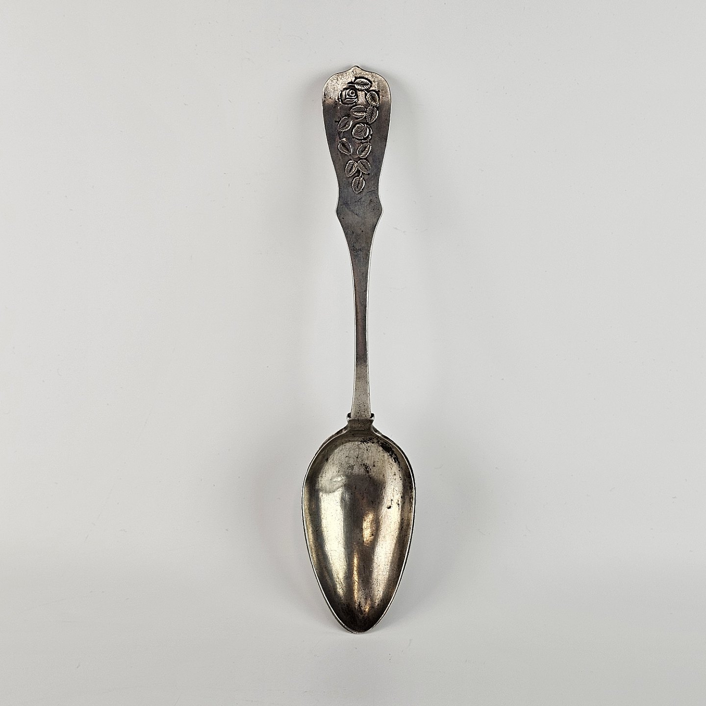 Sølv spiseske. Dekoreret med roser.