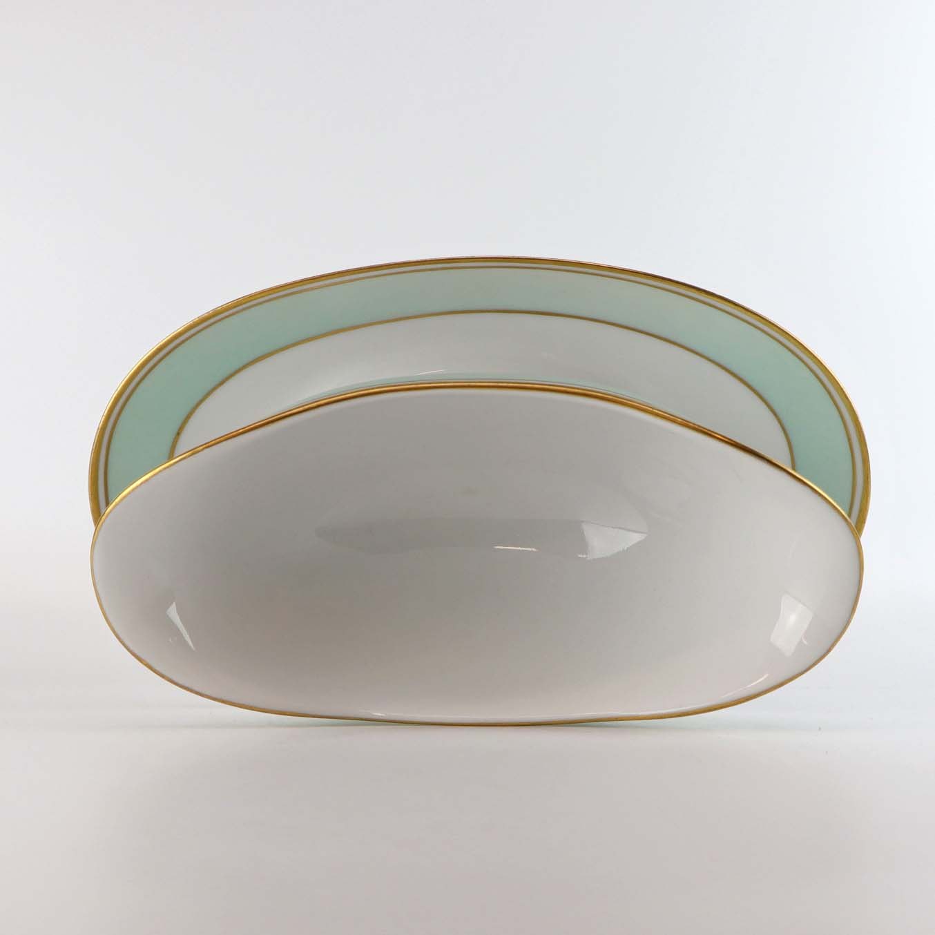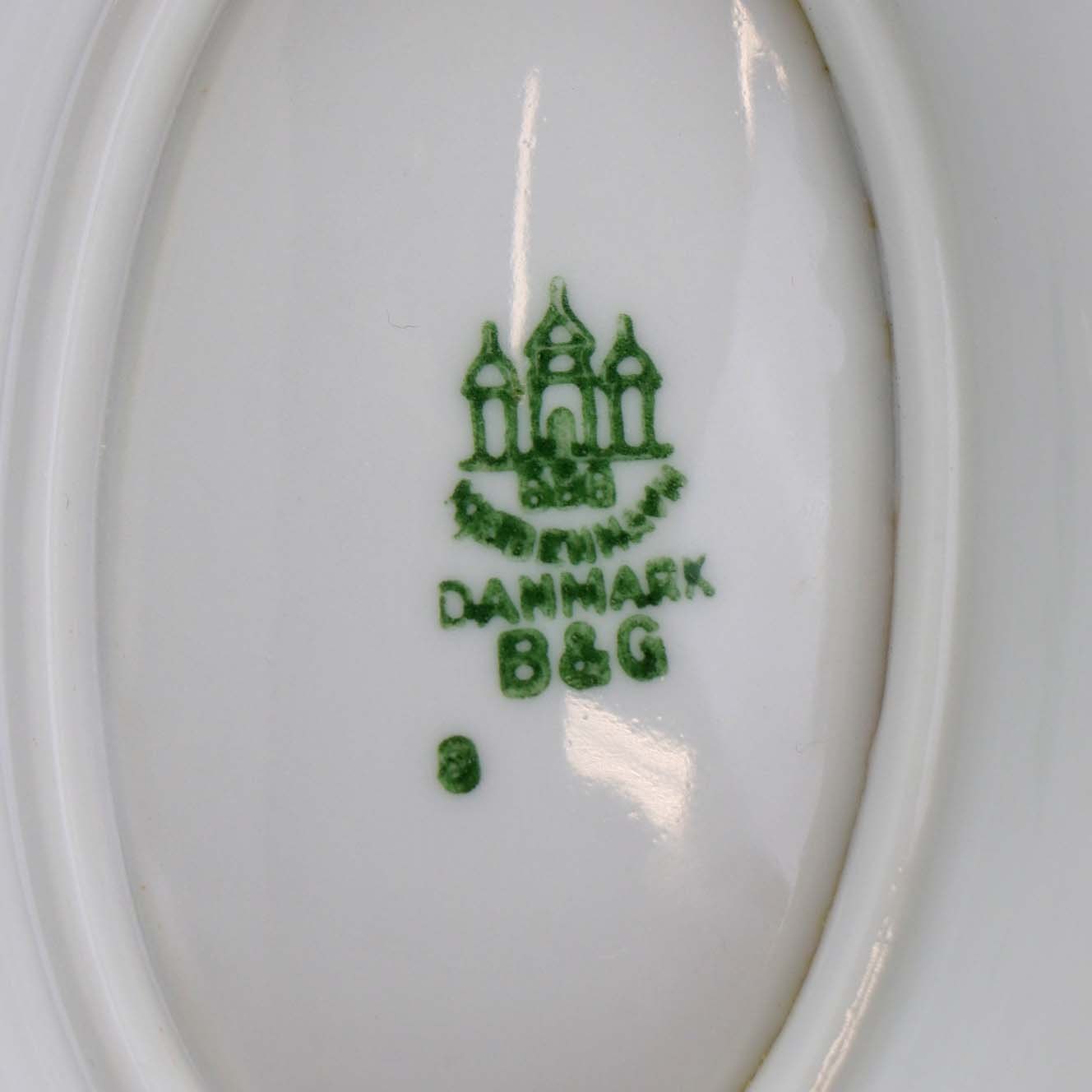 Strauss er af hvidt glaseret porcelæn med et bredt bånd i mintblå, samt enkelte guldlinjer. Lettere brugsspor kan forekomme