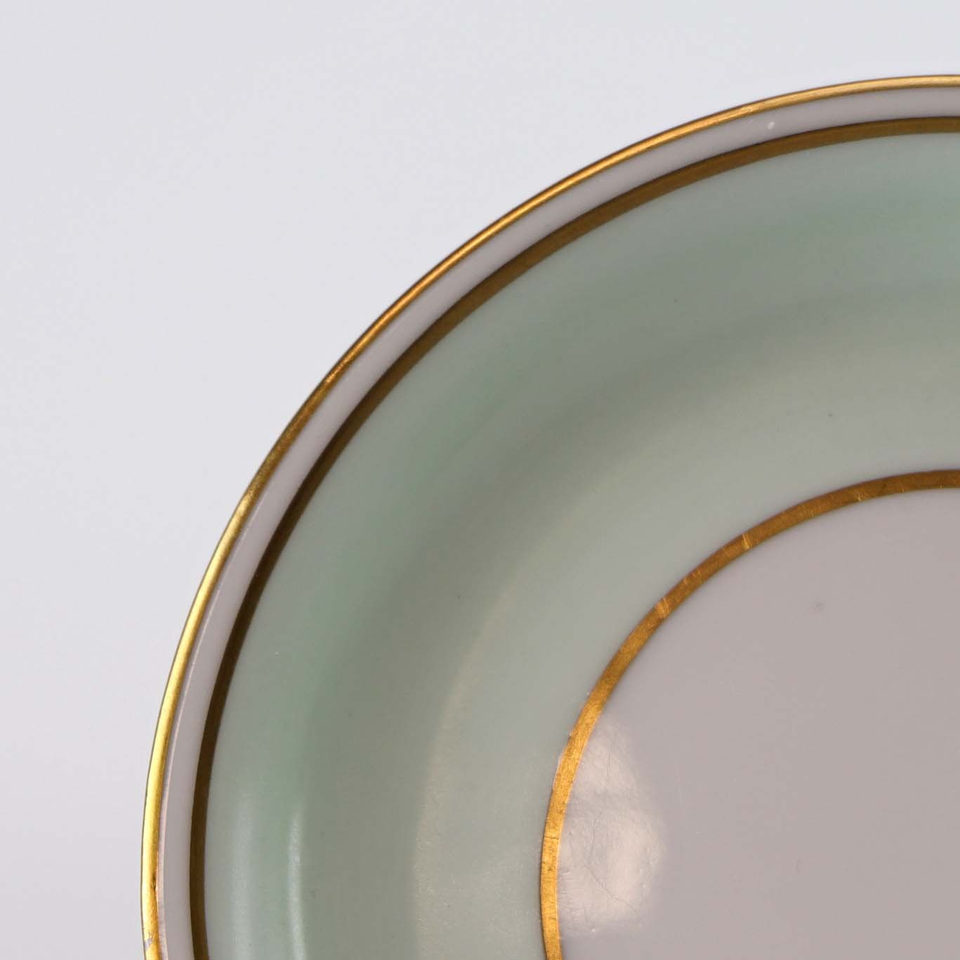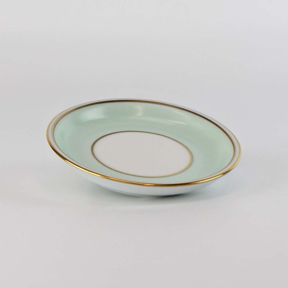Strauss er af hvidt glaseret porcelæn med et bredt bånd i mintblå, samt enkelte guldlinjer. Lettere brugsspor kan forekomme