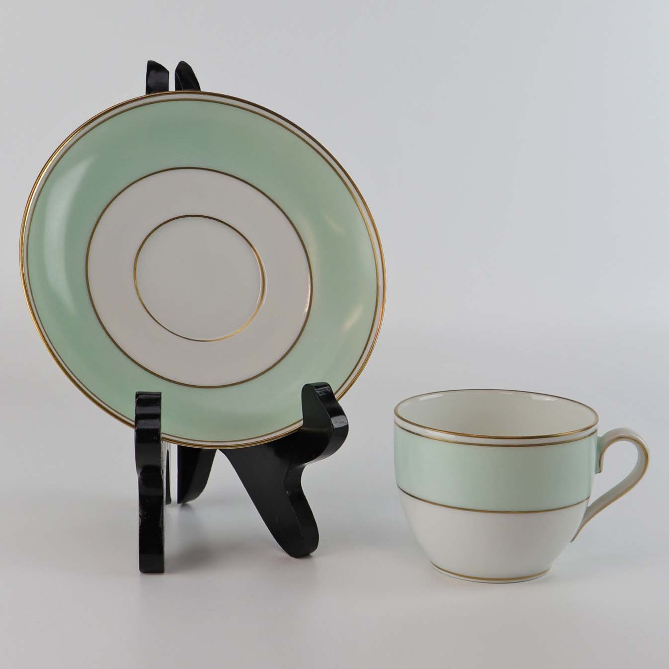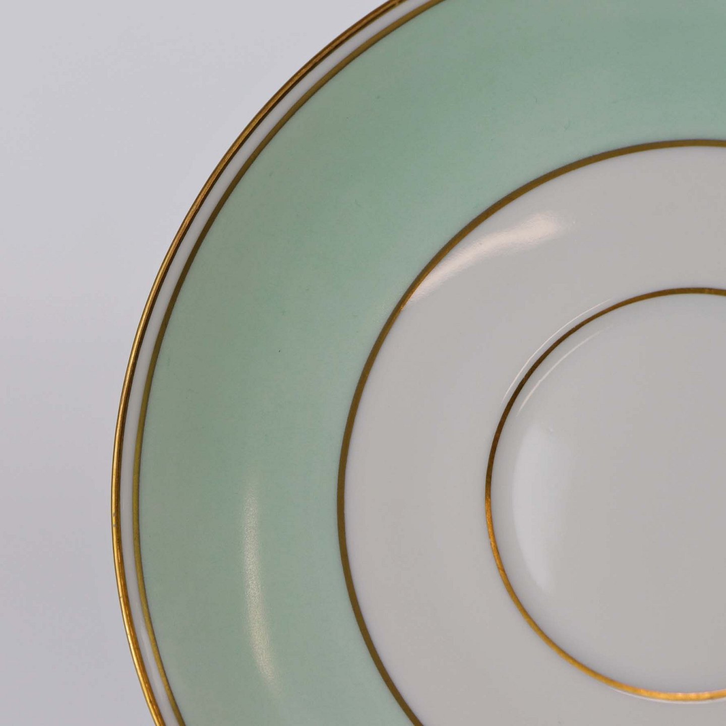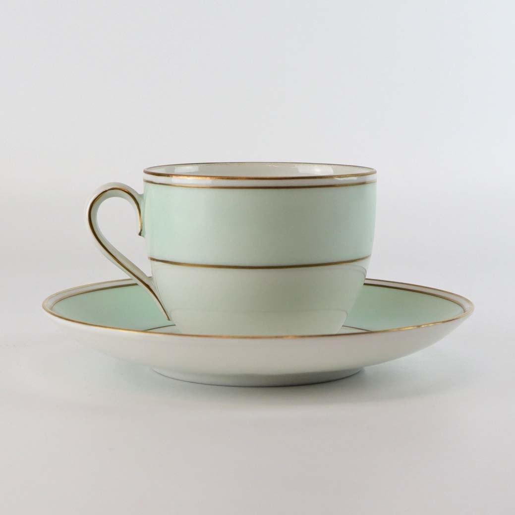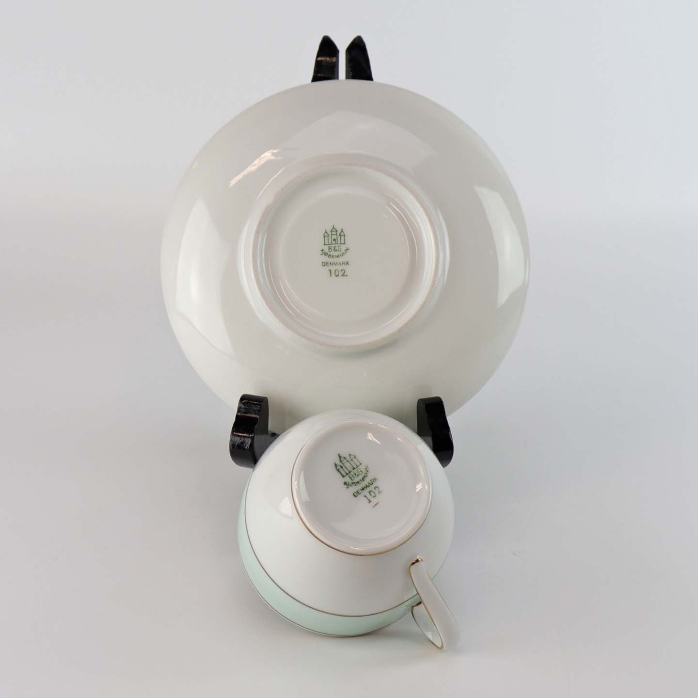 Strauss er af hvidt glaseret porcelæn med et bredt bånd i mintblå, samt enkelte guldlinjer. Lettere brugsspor kan forekomme