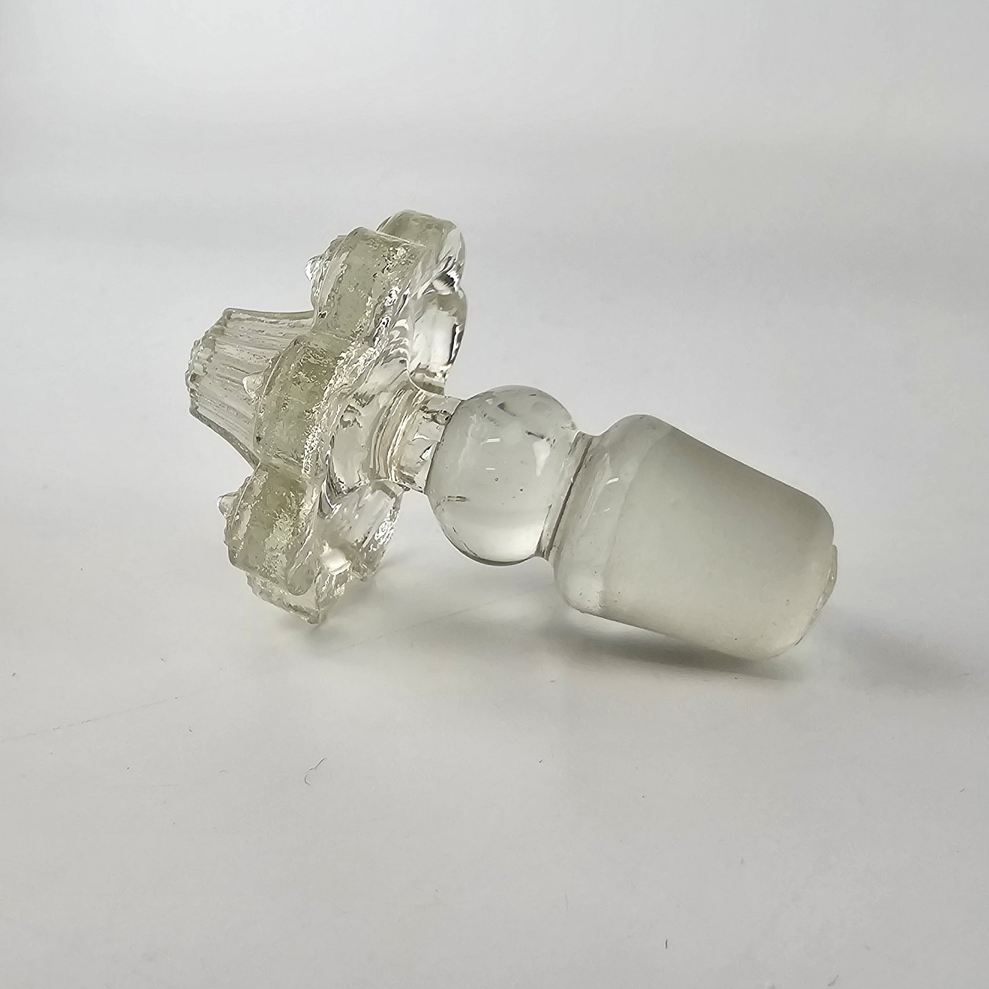 Karaffel dekoreret med falmet guld emalje med sløjfe i top