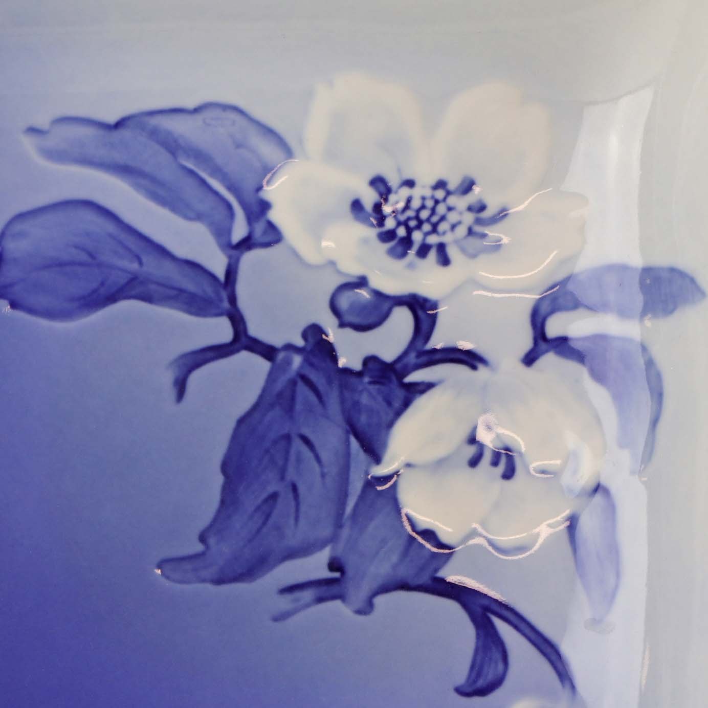 Julerose er hvidt porcelæn med gradueret blå farver, dekoreret med et motiv af en hvid julerose