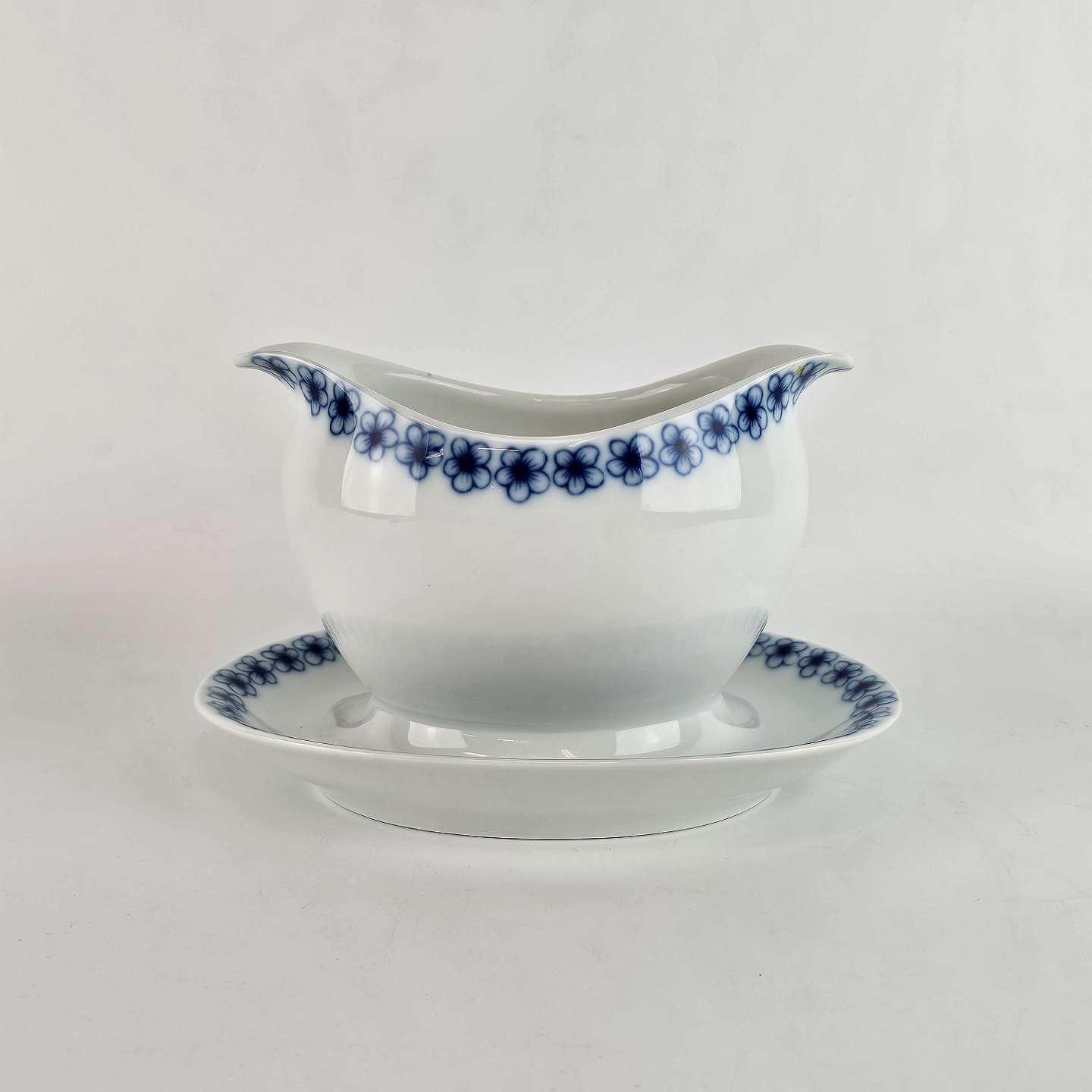 Elsa er af hvidt glaseret porcelæn, dekoreret med små blå blomster i kanten
