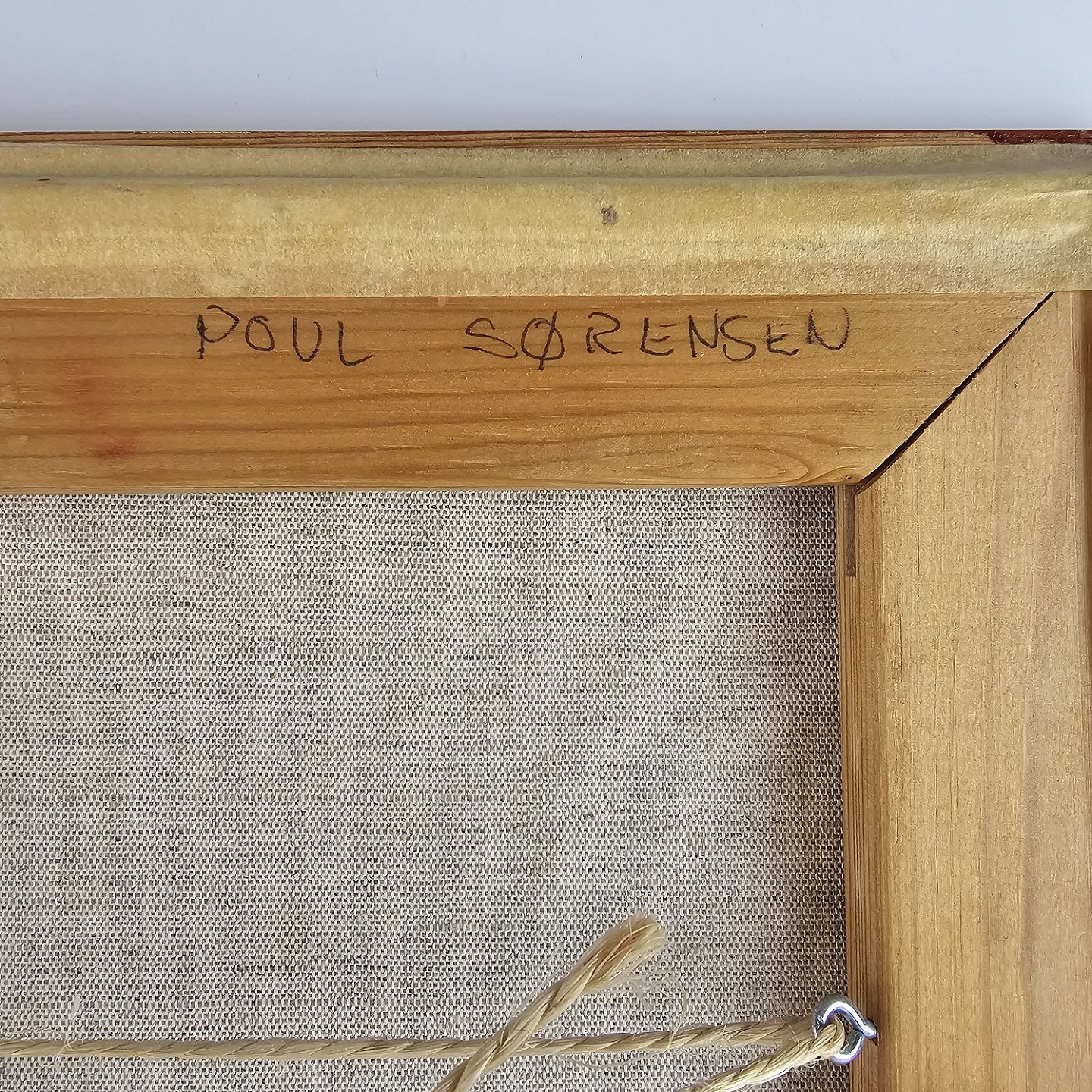 Oliemaleri på lærred. Landsbybillede med motiv af huse med titlen Ved Åvej Bangsbostrand