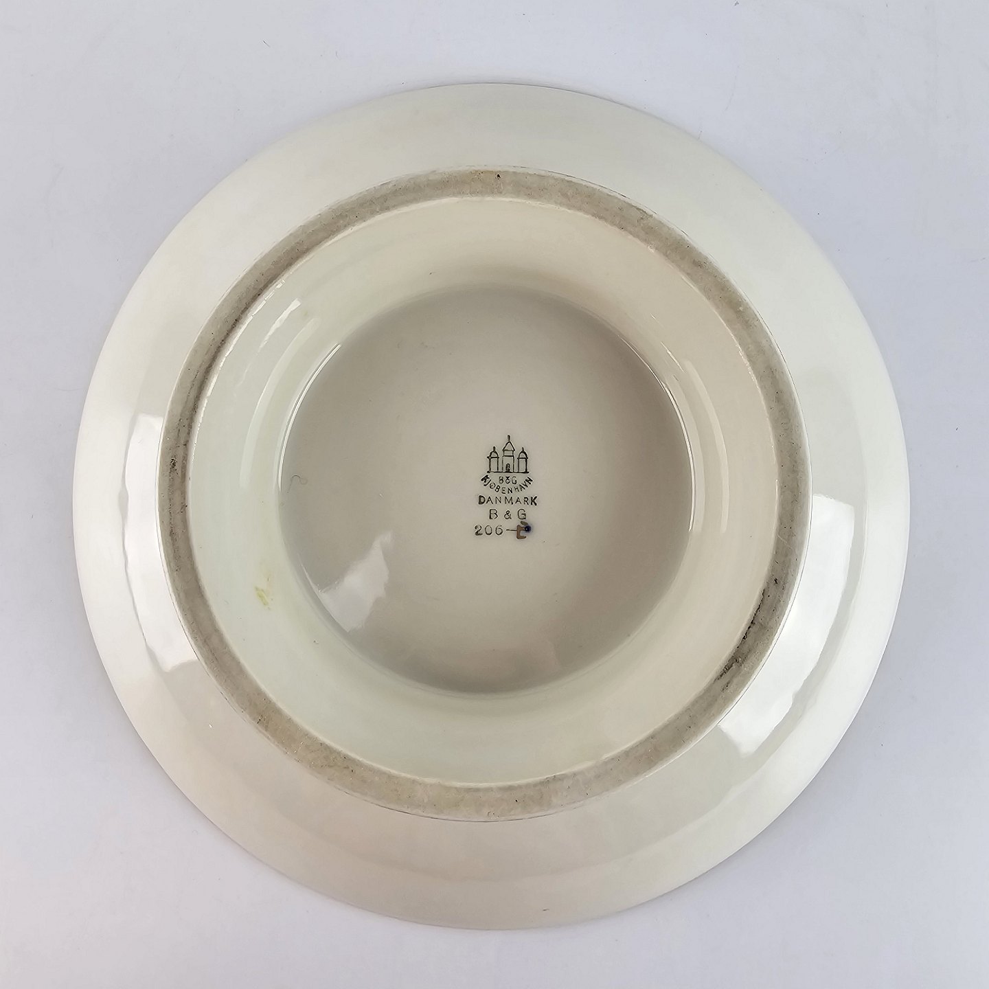 Åkjær er cremefarvet porcelæn med guldkant og mønster som ligner skæl. Lettere brugsspor kan forekomme