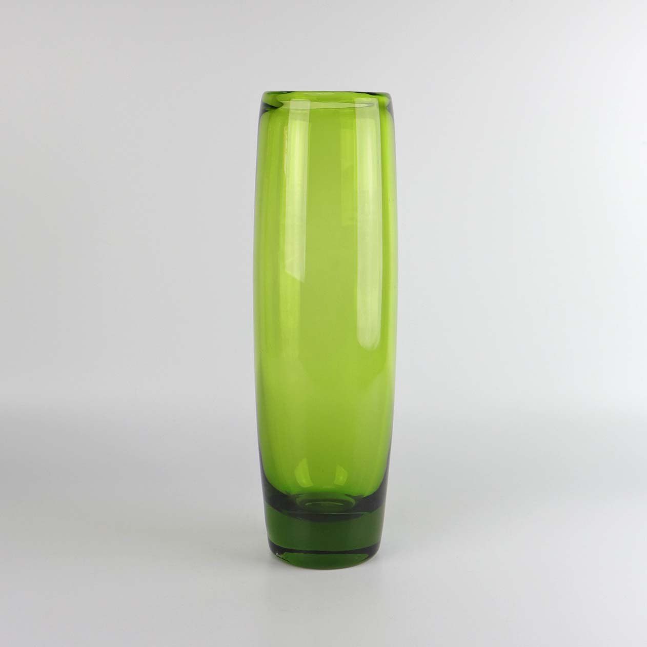 Høj torpedoformet vase i majgrøn glas. Nr. 18122