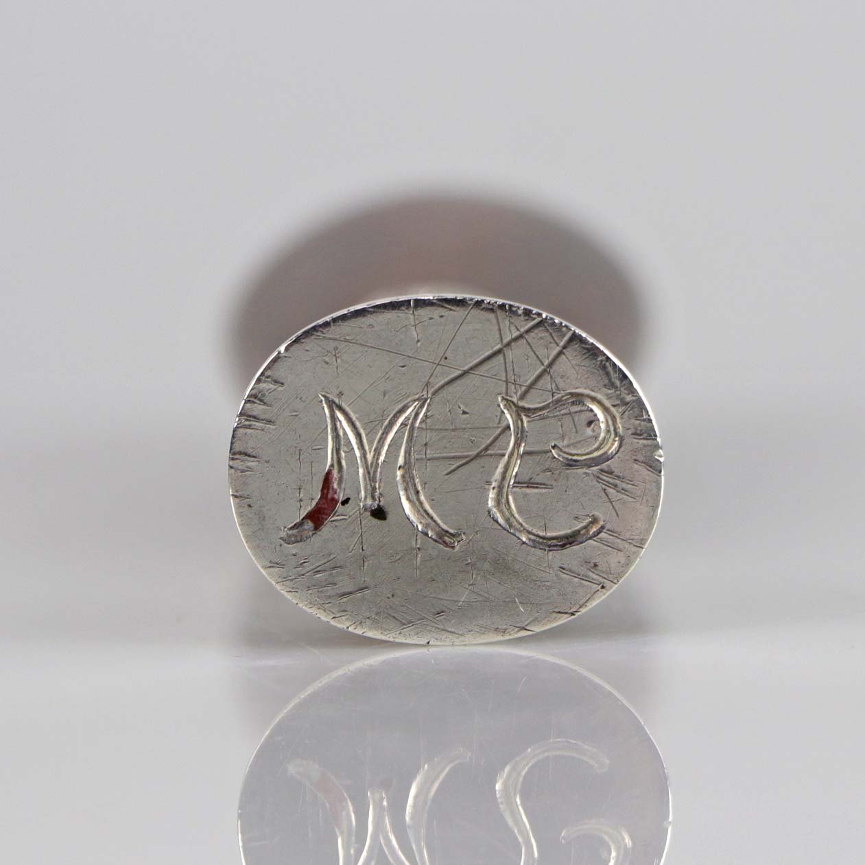 Signatur stempel i tre tårnet sølv med fod af banket sølv og monogrammet J M