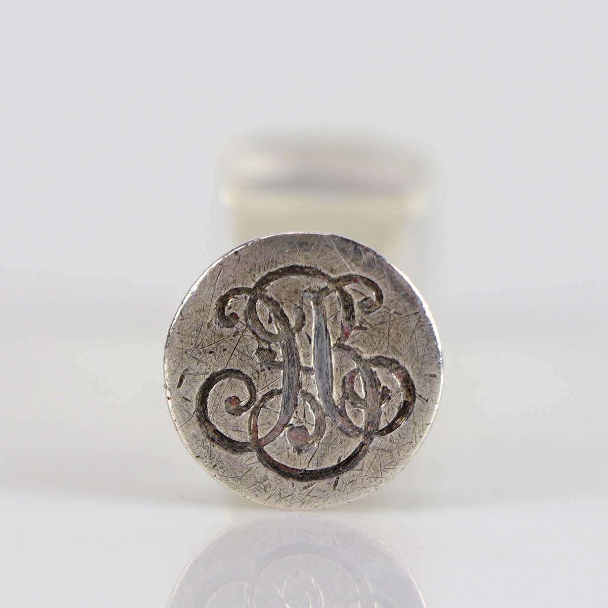 Signatur stempel i 830 sølv med glas dekoration og monogrammet H B