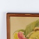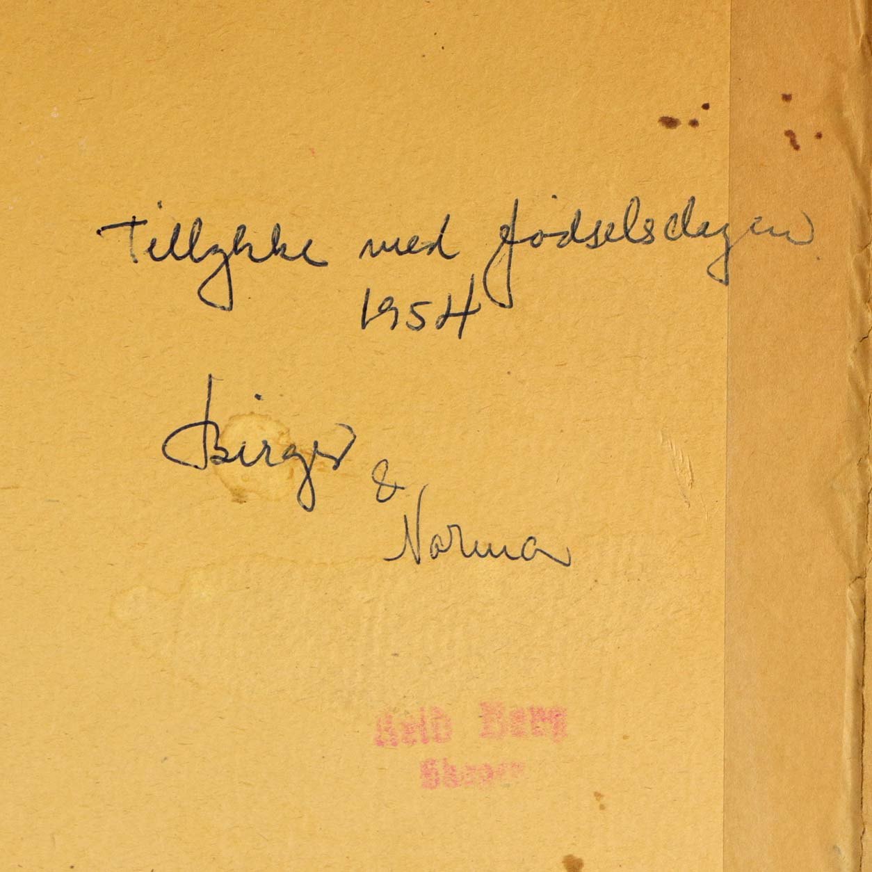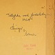Fremstår med brugsspor på trærammen og en håndskrevet fødselsdagshilsen på bagsiden