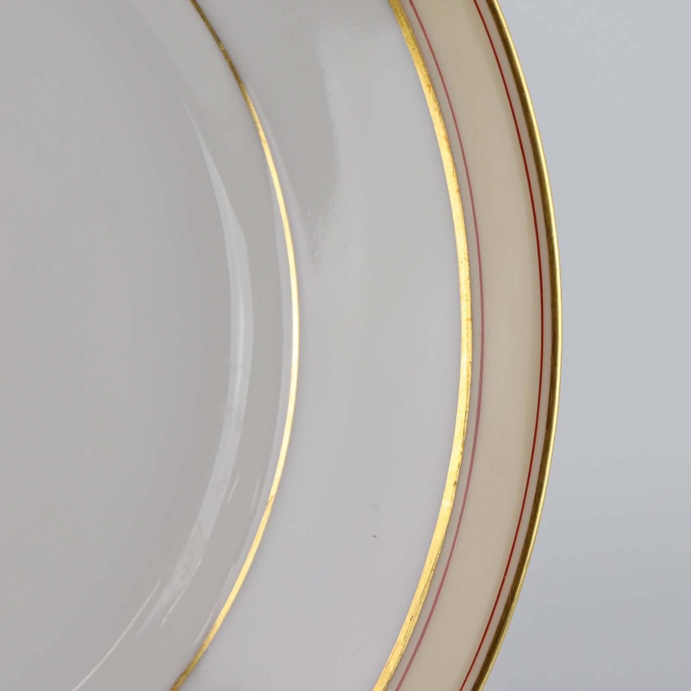 Don Juan er af glaseret hvidt porcelæn, dekoreret med røde og guldfarvet striber, samt gulligt bånd