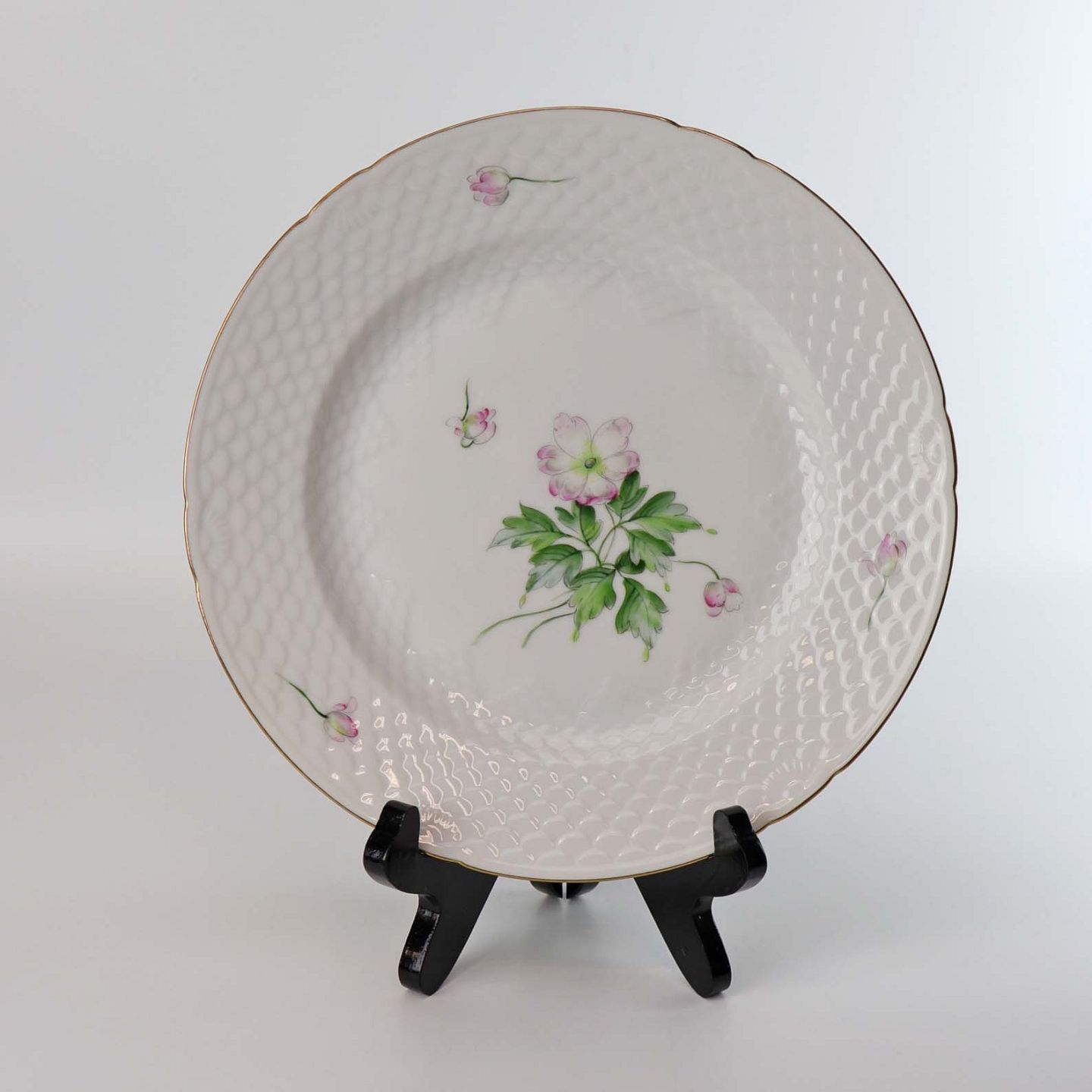 Flad middagstallerken i porcelæn fra stellet Anemone Macbeth. Nr. 25