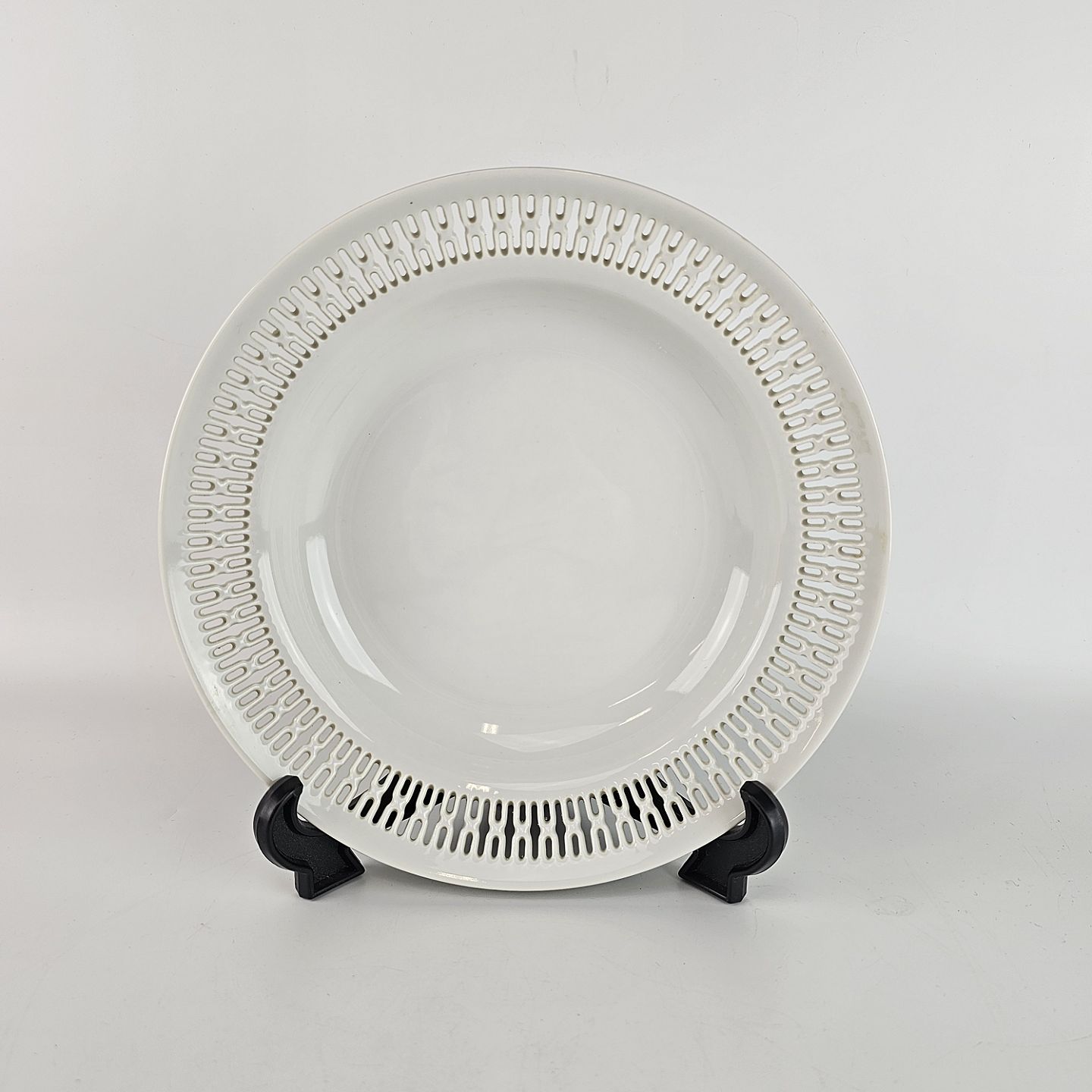 Service i hvidt porcelæn med gennembrudt kant