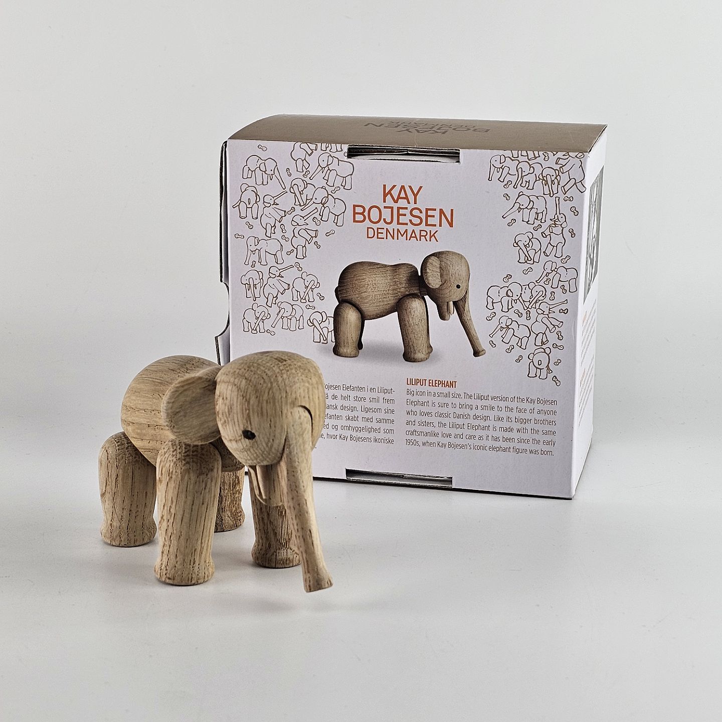 Figur i egetræ og ahorn med motiv af Liliput elefant. Figuren kommer med original boks