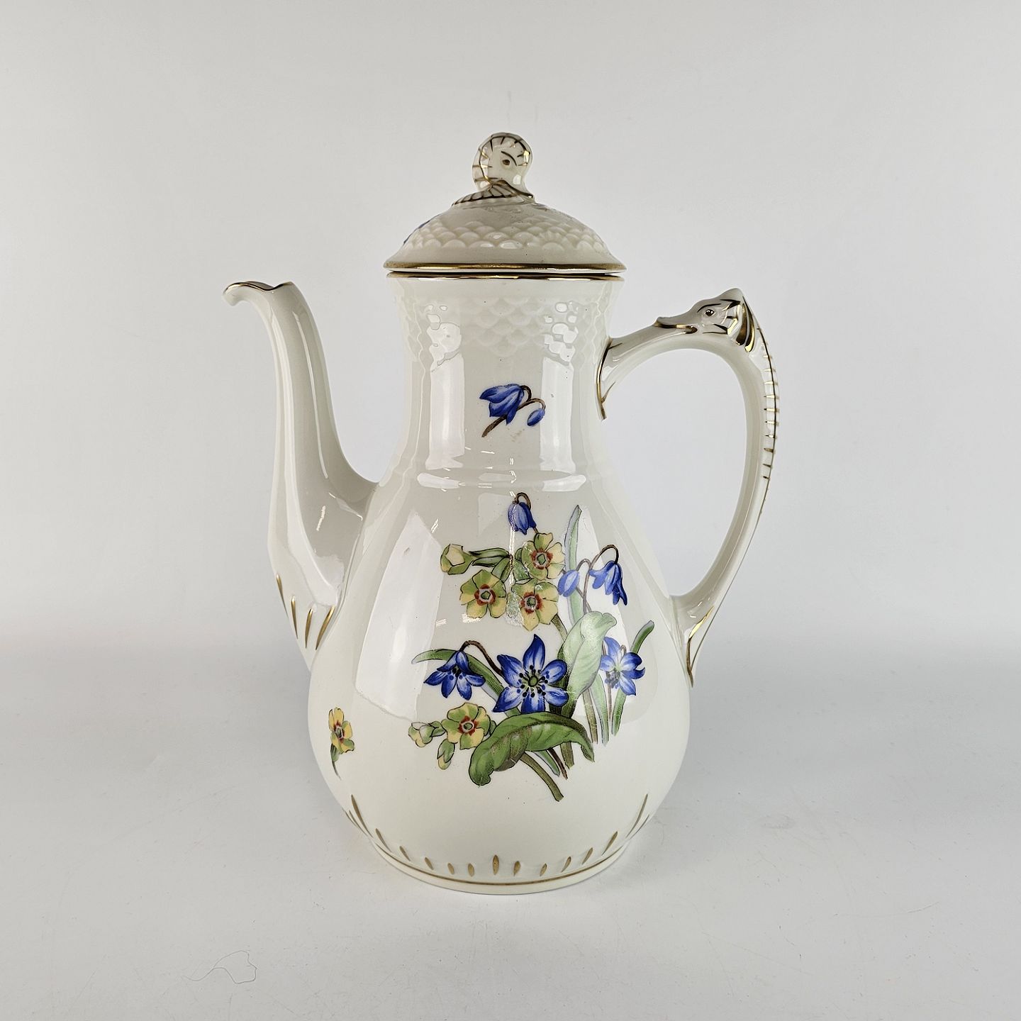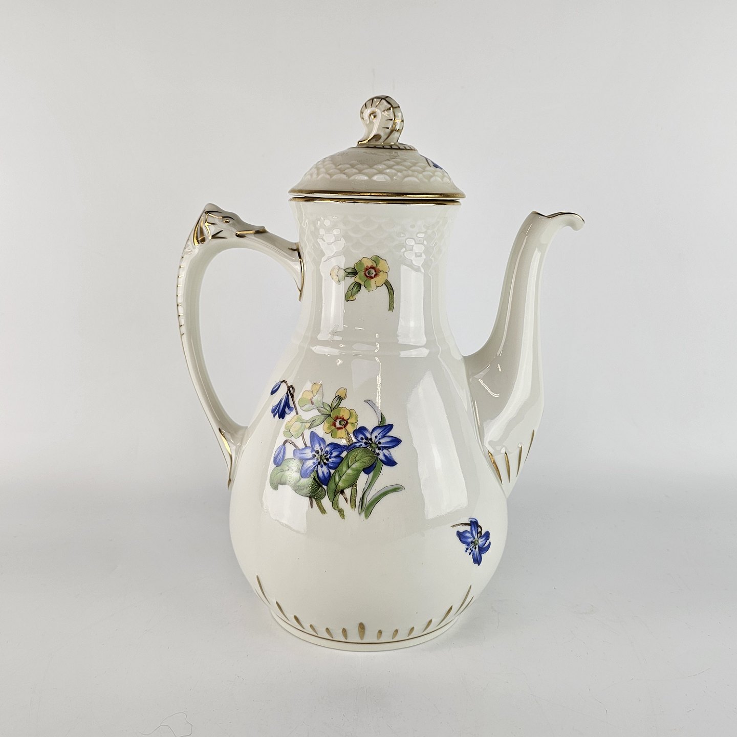 Njal er af creme farvet glaseret porcelæn, præget med skæl lignende mønster. Stellet er dekoreret med gul og blå blomster samt mønster af guld i kanten. Lettere brugsspor kan forekomme