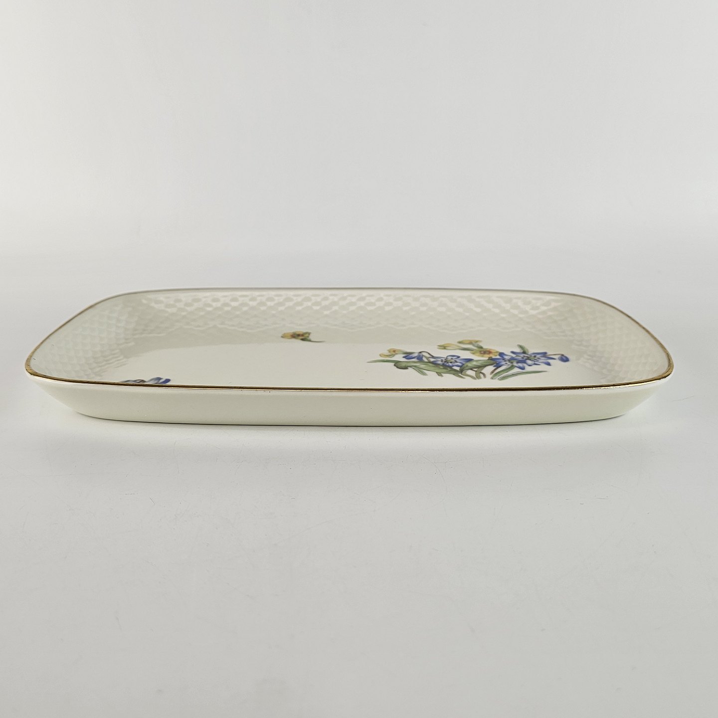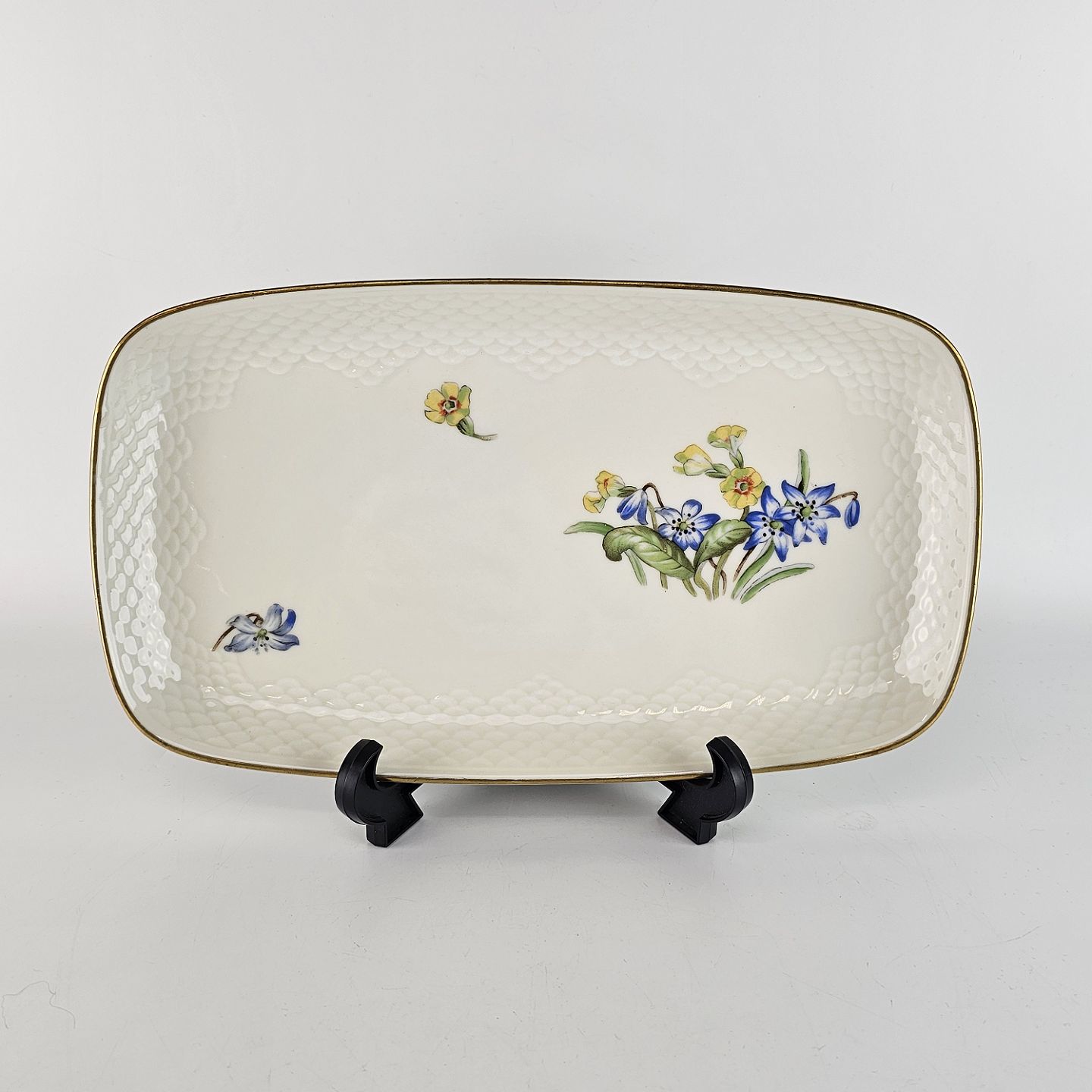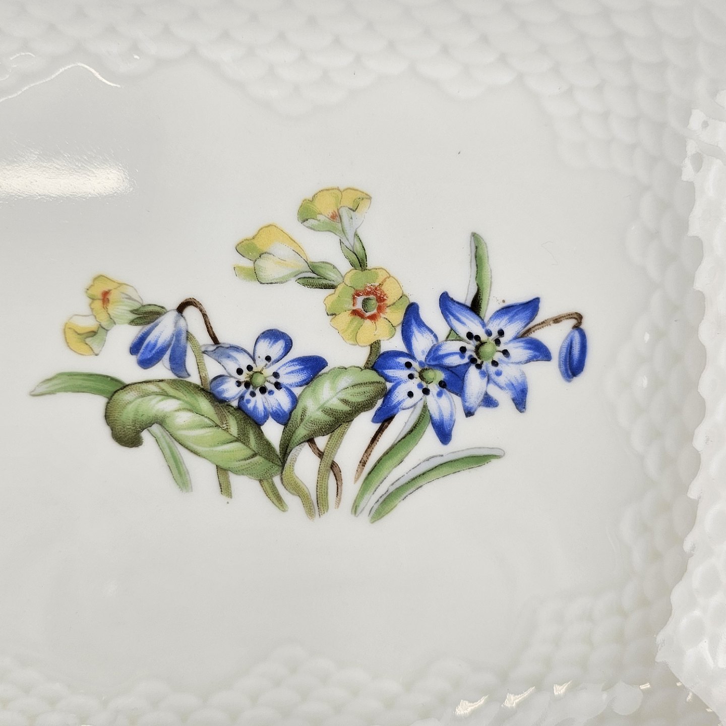 Njal er af creme farvet glaseret porcelæn, præget med skæl lignende mønster. Stellet er dekoreret med gul og blå blomster samt mønster af guld i kanten. Lettere brugsspor kan forekomme