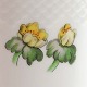 Hvidt porcelæn i skælform med dekoration af gule blomster og guldkant