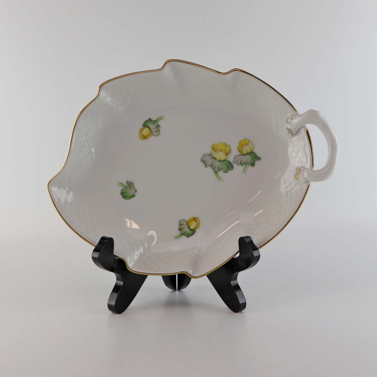 Bladformet fad med hank i porcelæn fra stellet Erantis. Nr. 199
