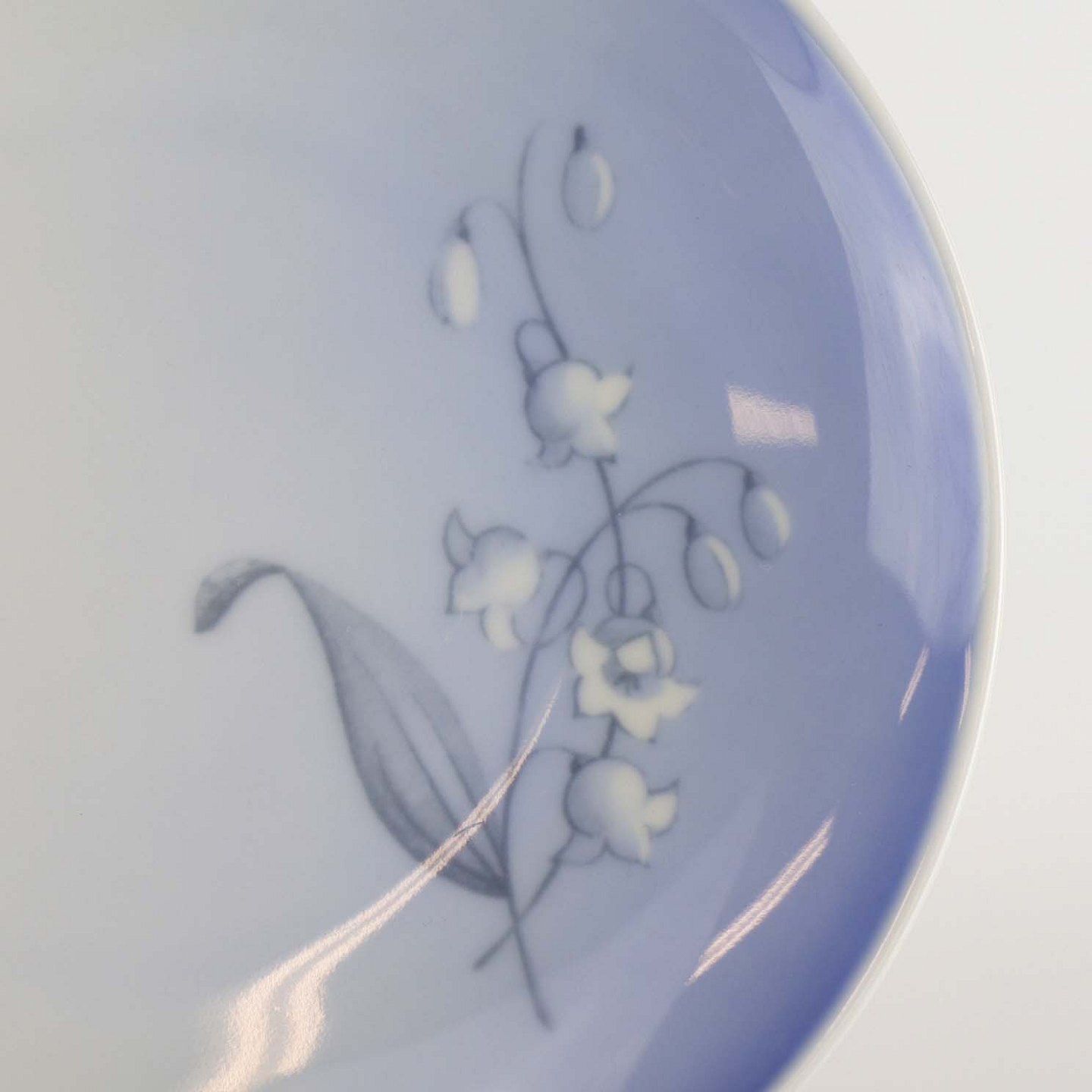 Stellet er fra 1970 og udformet i glat porcelæn med gradueret blålig tone samt motiv af en liljekonval.